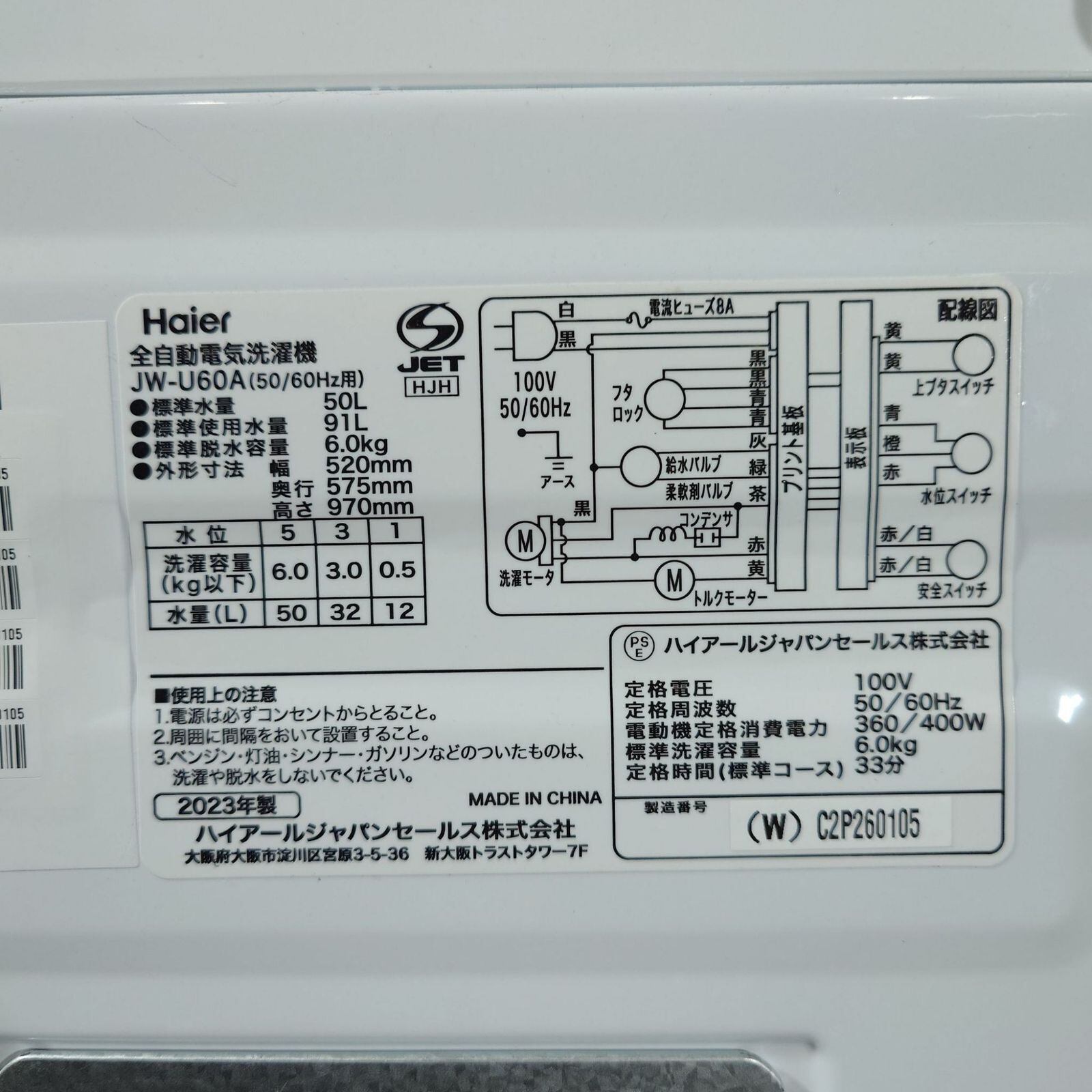 ・洗濯機 6.0kg
