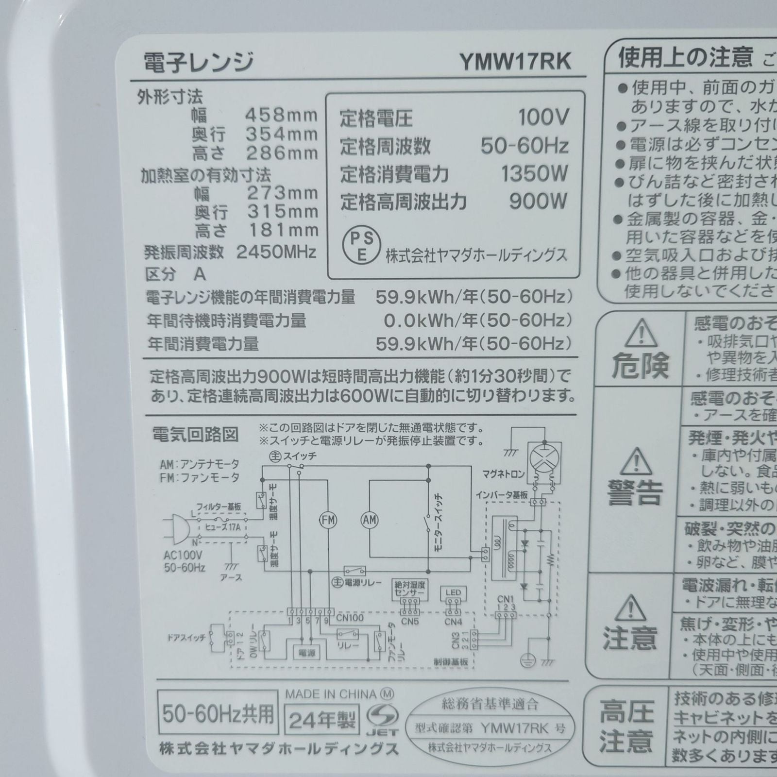 ・電子レンジ:幅458mm×奥行354mm×高さ181mm