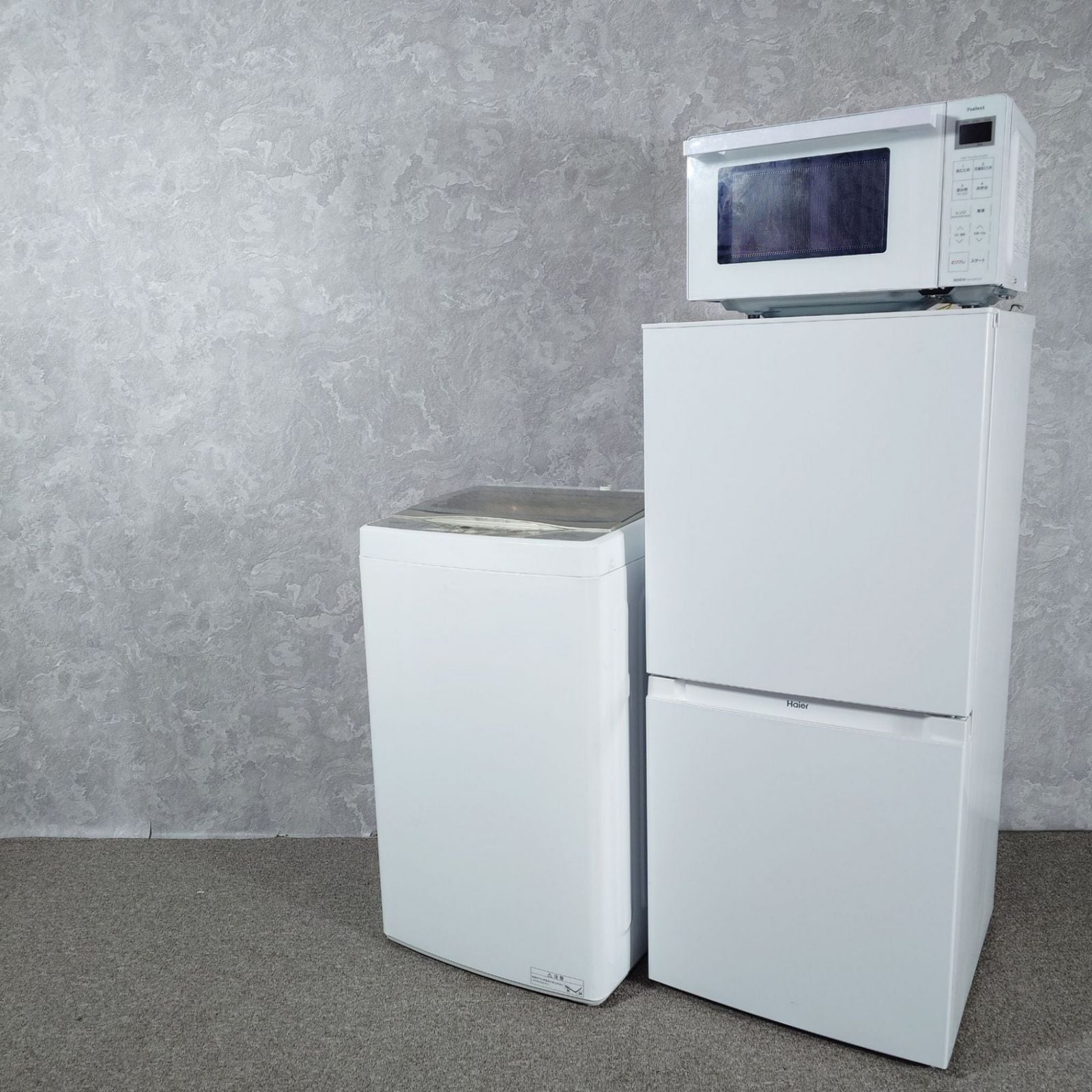 D 25937【2022-24年制】 家電セット AQUA アクア YAMADA ヤマダ Haier ハイアール 冷凍冷蔵庫 JR-NF121B 121L 洗濯機 AQW-S5M 5.0kg 電子レンジ YMW17RK 50/60Hz