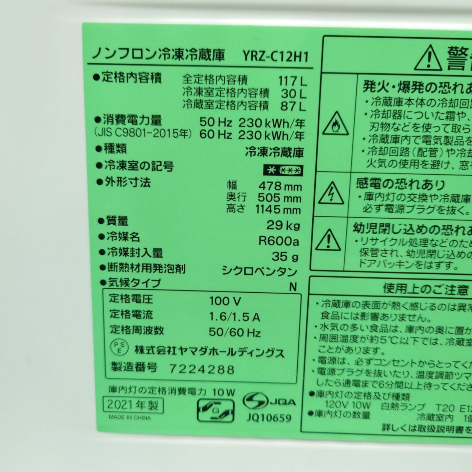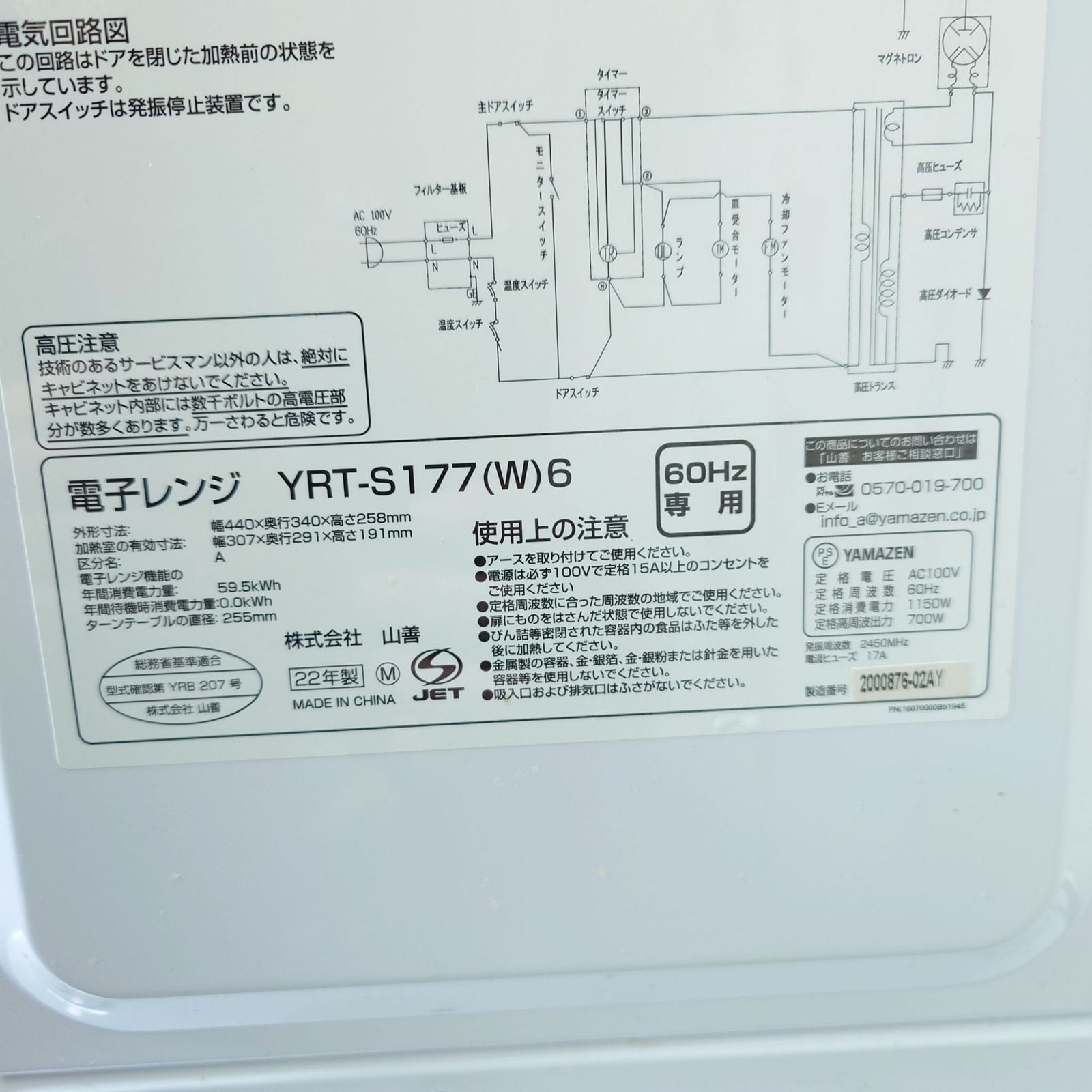 D 25946【2021-2022年製】冷蔵庫 洗濯機 電子レンジ 家電セット ヤマダ YRZ-C12H1 117L YWM-T60H1 6.0kg YRT-S177(W)6 60Hz専用