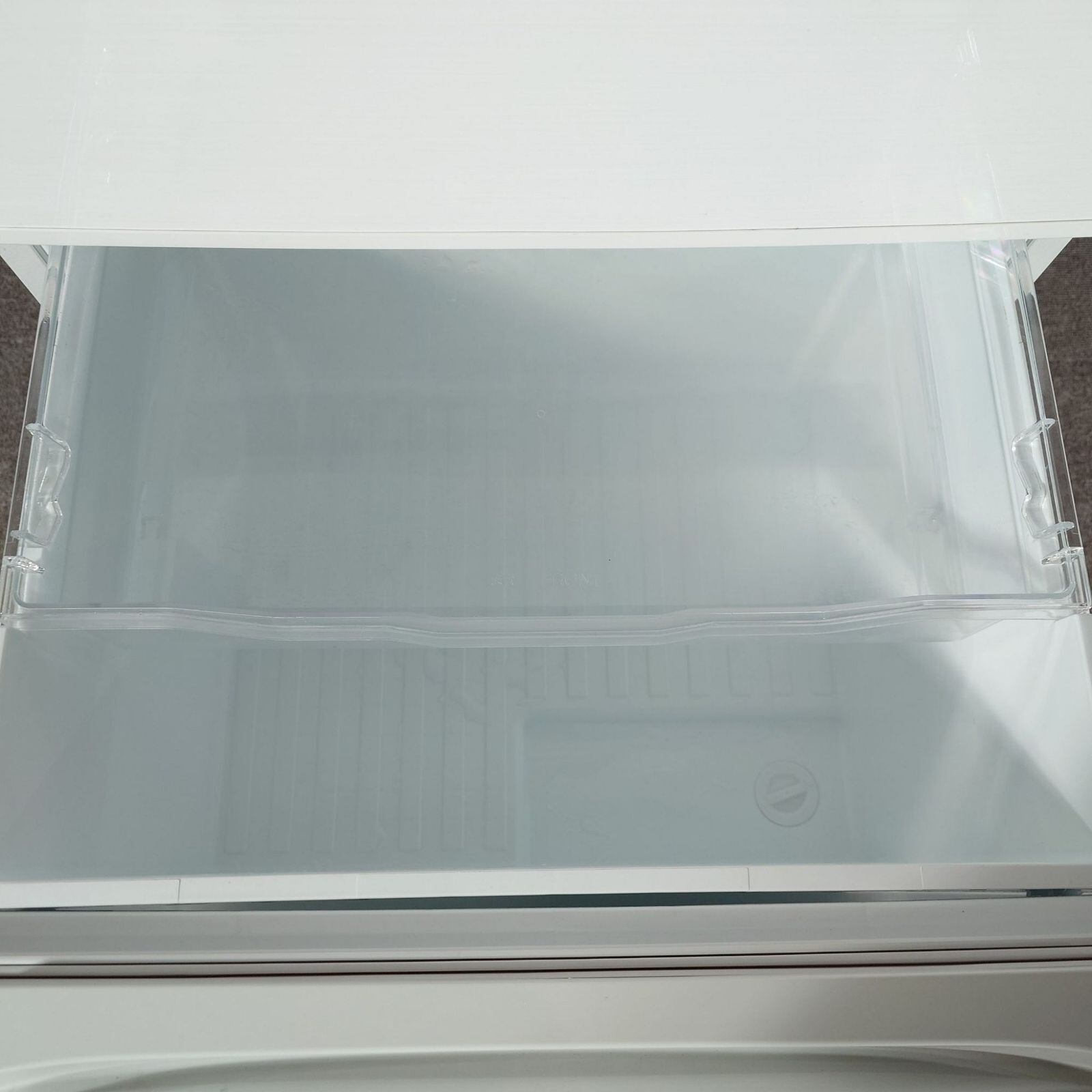 「うるおいラップ野菜室」採用の片開き冷蔵庫。野菜室と冷凍室をしっかり仕切って野菜室の気密性を高め、庫内の水分を閉じ込め高湿度な環境に保つ。