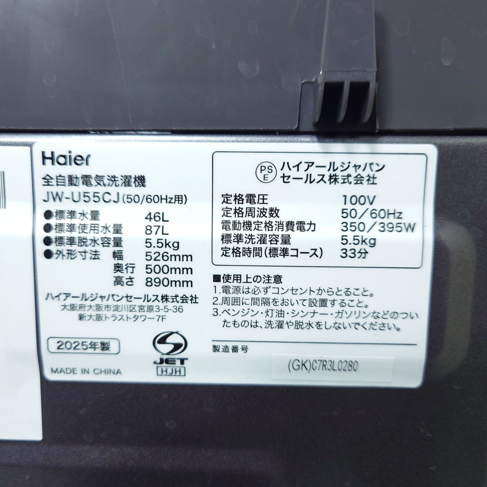 D 25952【2025年製】 極美品 家電 洗濯機 Haier ハイアール JW-U55CJ 5.5kg