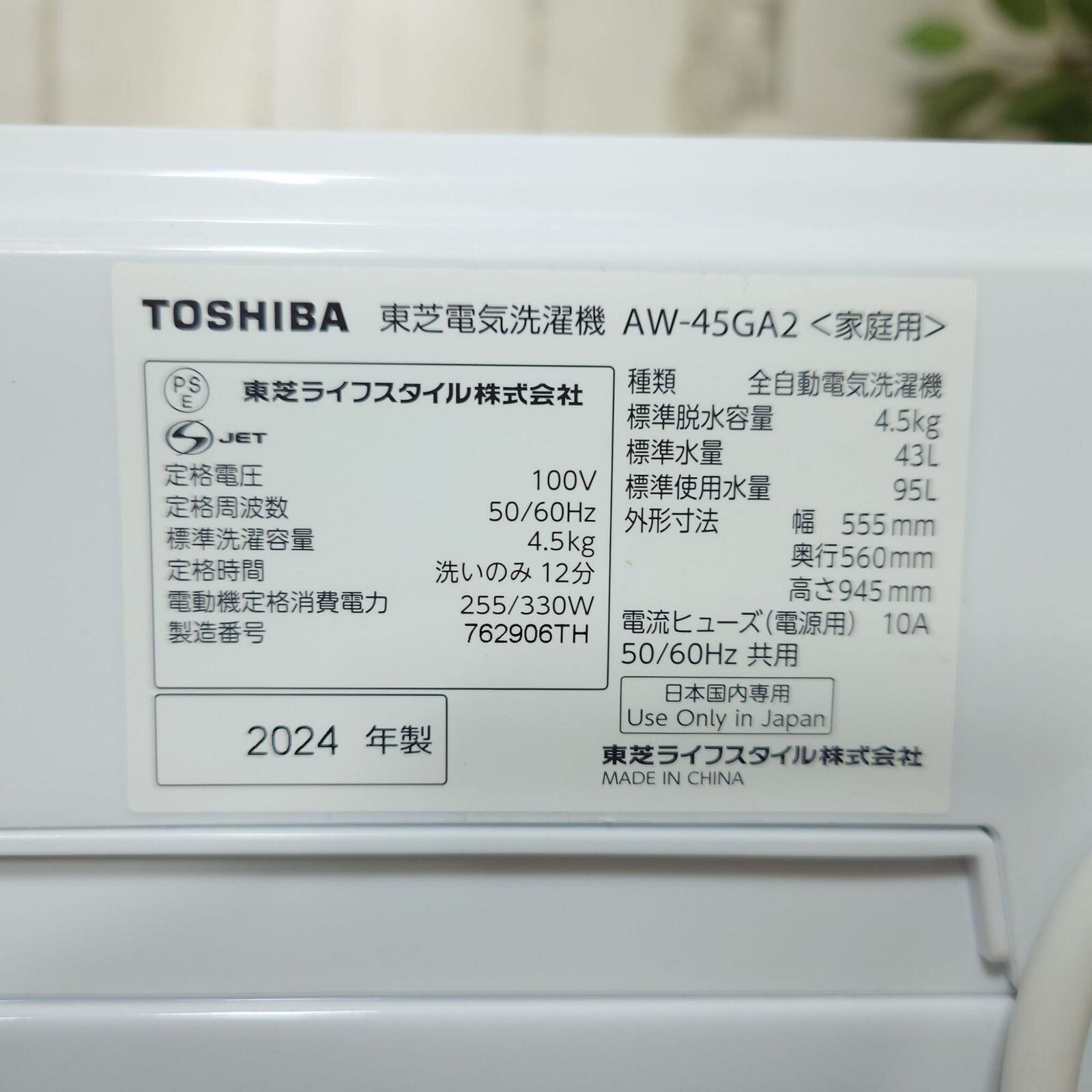 D 25954【2024年製】 極美品 家電 TOSHIBA 東芝 洗濯機 AW-45GA2 4.5kg