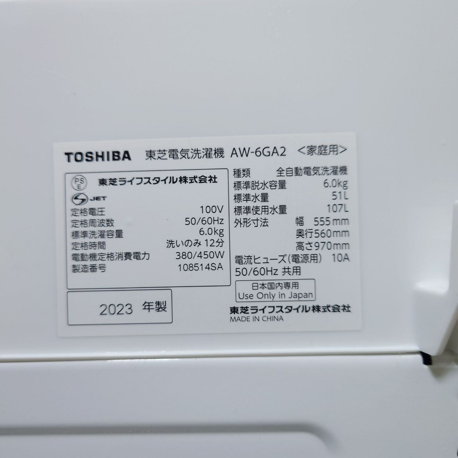 D 25957【2023年製】TOSHIBA 東芝 洗濯機 AW-6GA2 6.0kg 家電