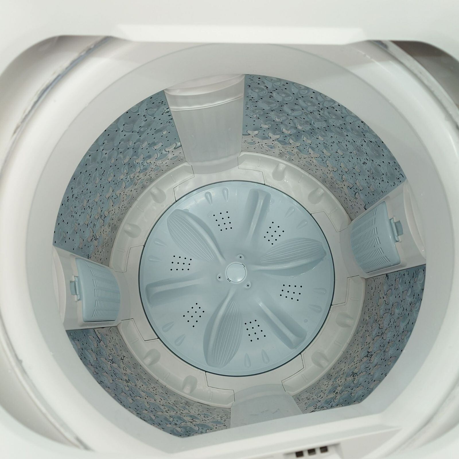 「Wシャワー洗浄」でしっかり洗う縦型全自動洗濯機。2本のシャワーで洗浄液を衣類全体に浸透させ、ムラを抑えてきれいに洗える。