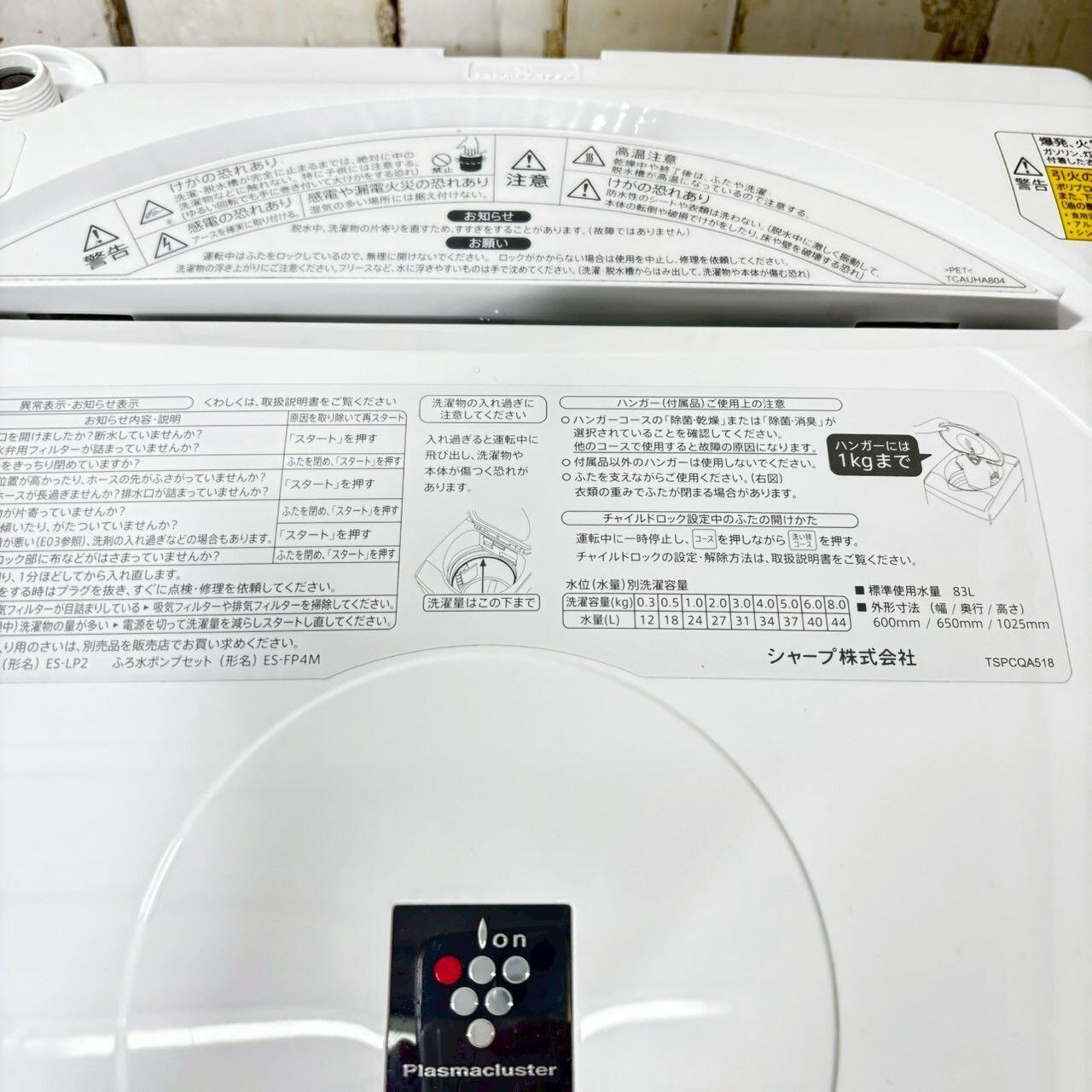 D 25960【2022年製】SHARP シャープ ES-TX8G-W 洗濯機 8.0kg
