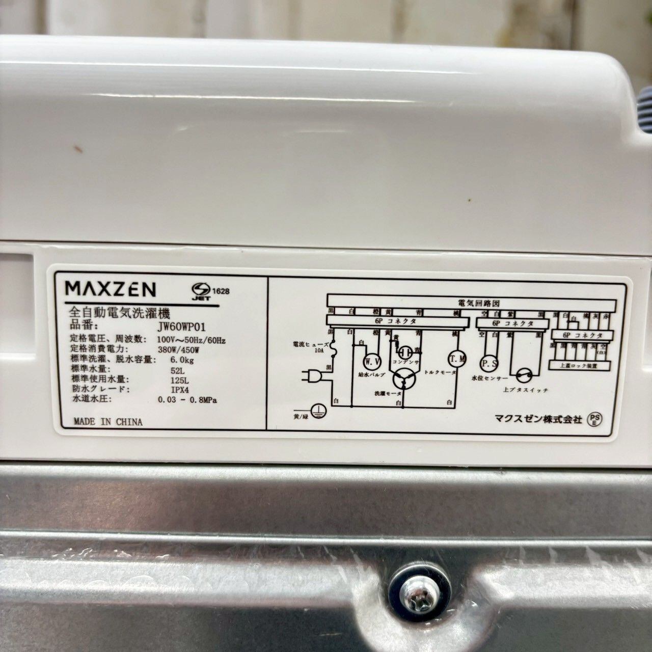 D 25961【2023年製】MAXZEN マクスゼン JW60WP01 洗濯機 6.0kg
