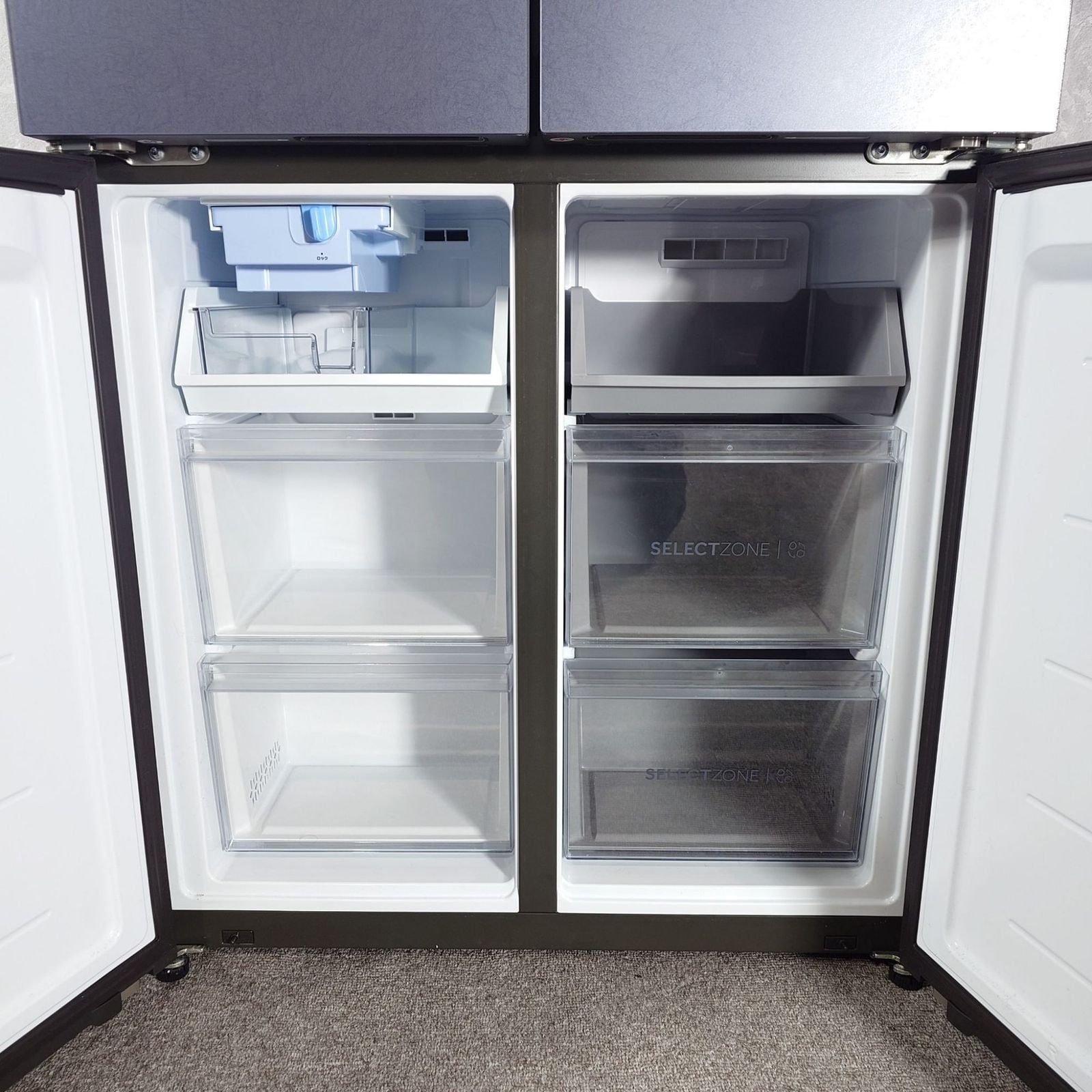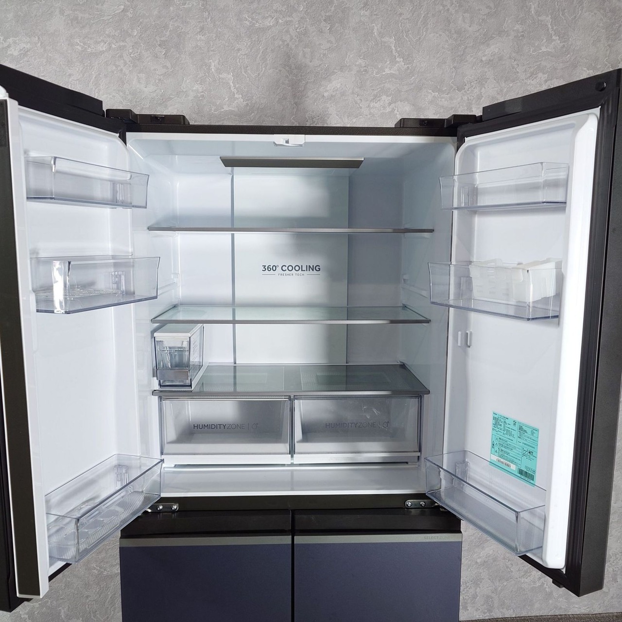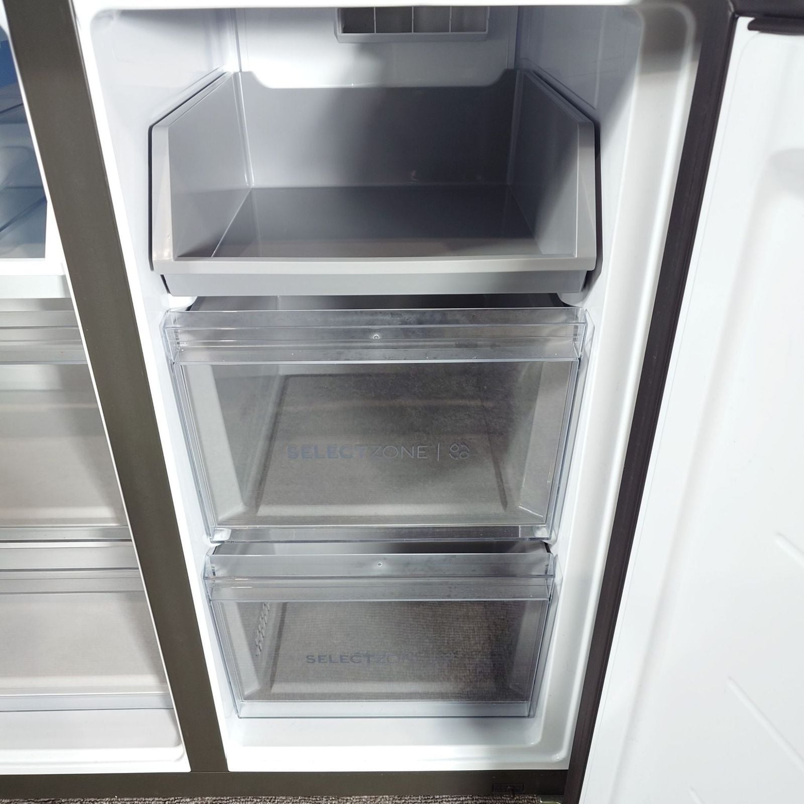 前から見渡せるフレンチドアとクリアバスケットで、冷凍庫の中身をひと目で把握できる。冷凍下段右側は好きな温度に設定できるセレクトゾーン。