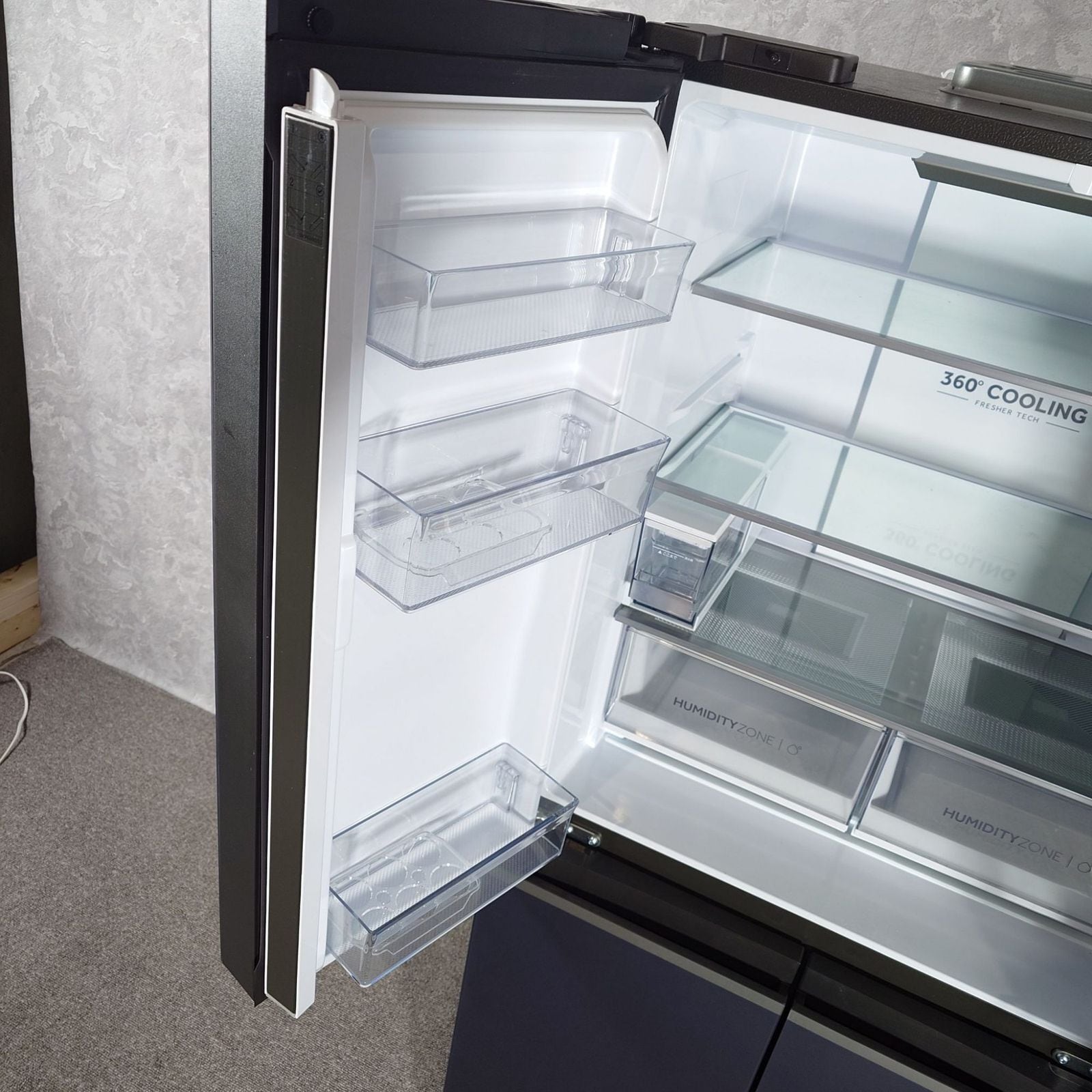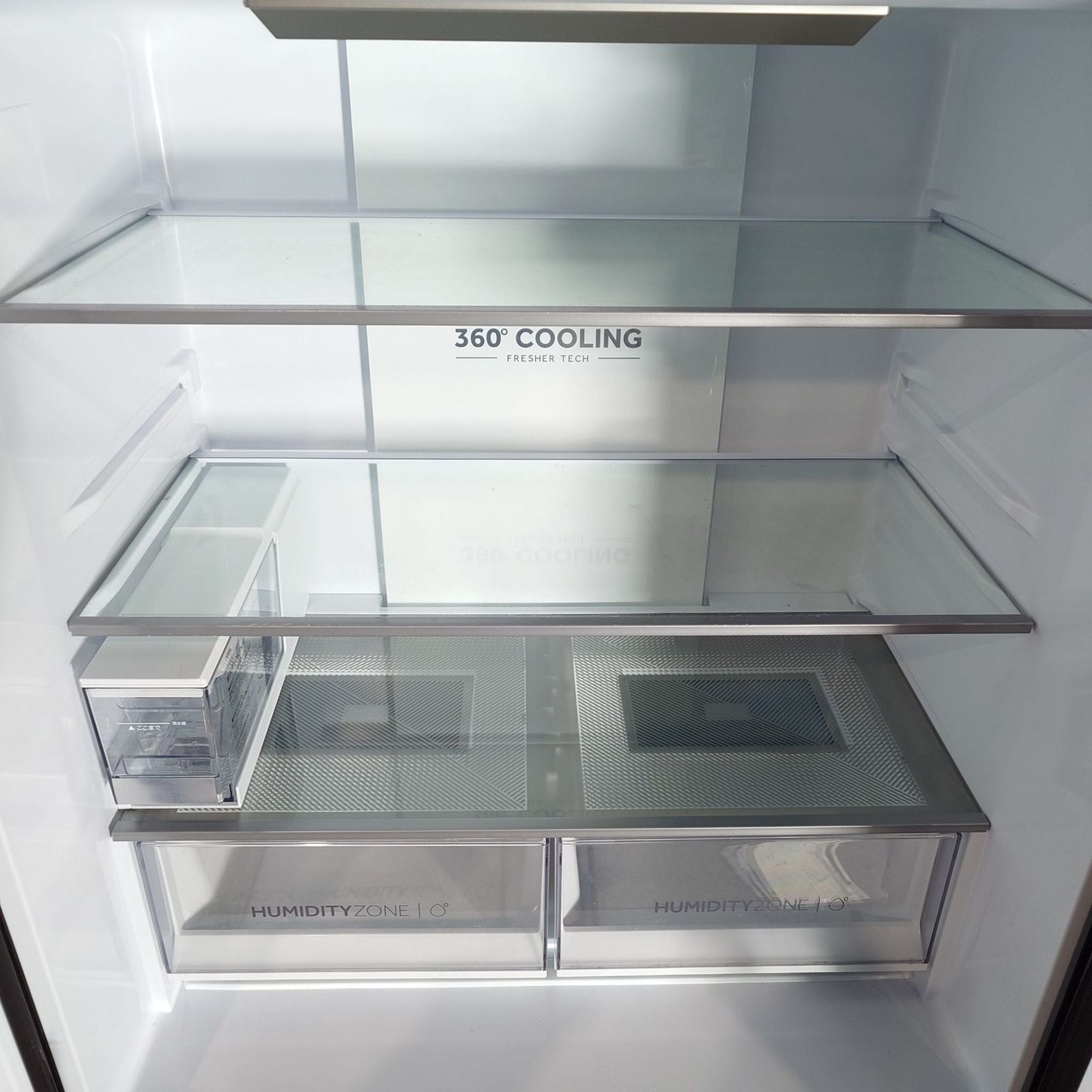 2つの野菜室にはそれぞれ、野菜の保存に適した湿度を保つ湿度調整フィルターを装備。庫内温度やモードの設定ができる前面タッチ式操作パネルを採用。