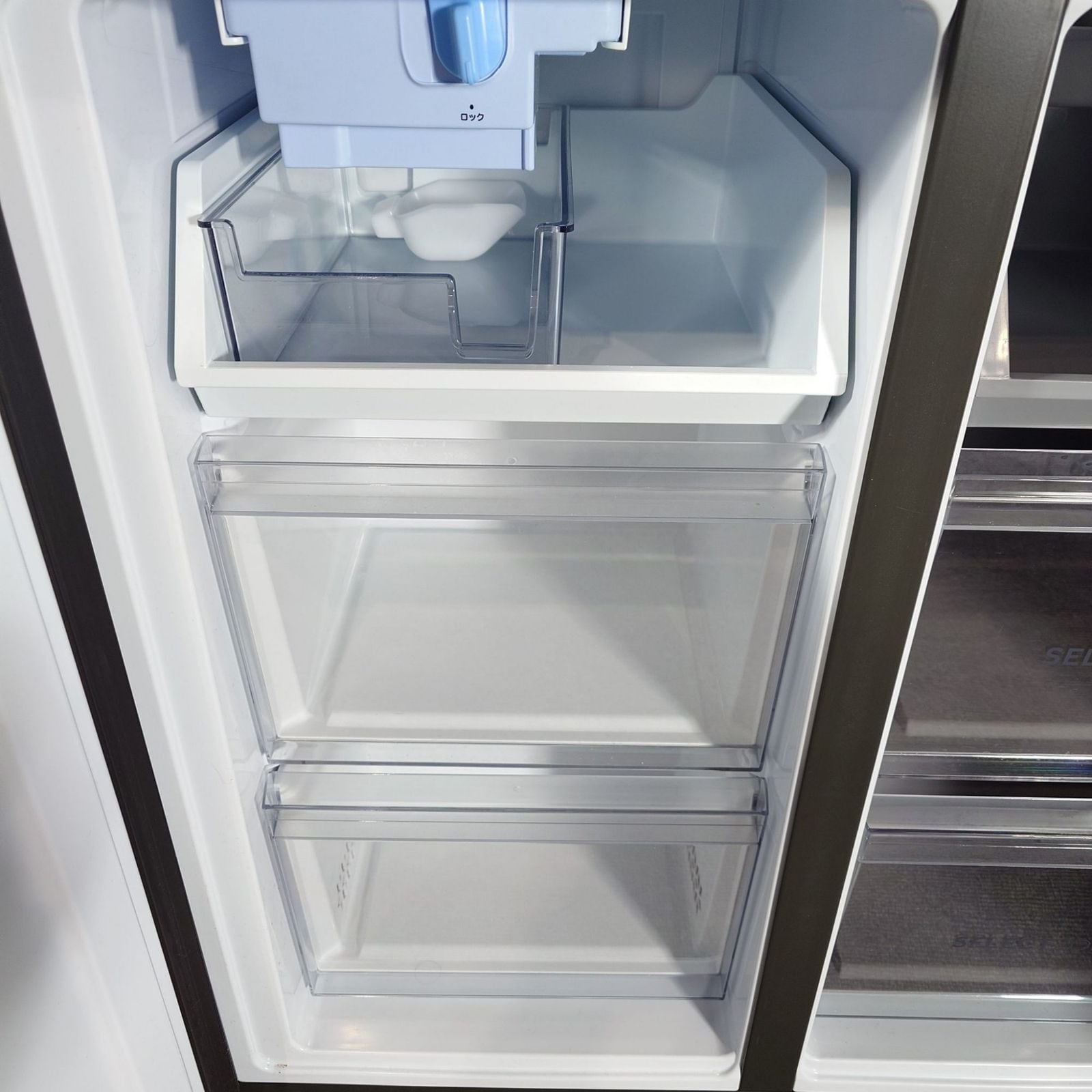 2列×3段で使いやすさにもこだわった166Lの「ジャイアントフリーザー」を搭載した冷凍冷蔵庫(470L)。買い物カゴ約5個分の食品がたっぷり収納できる。