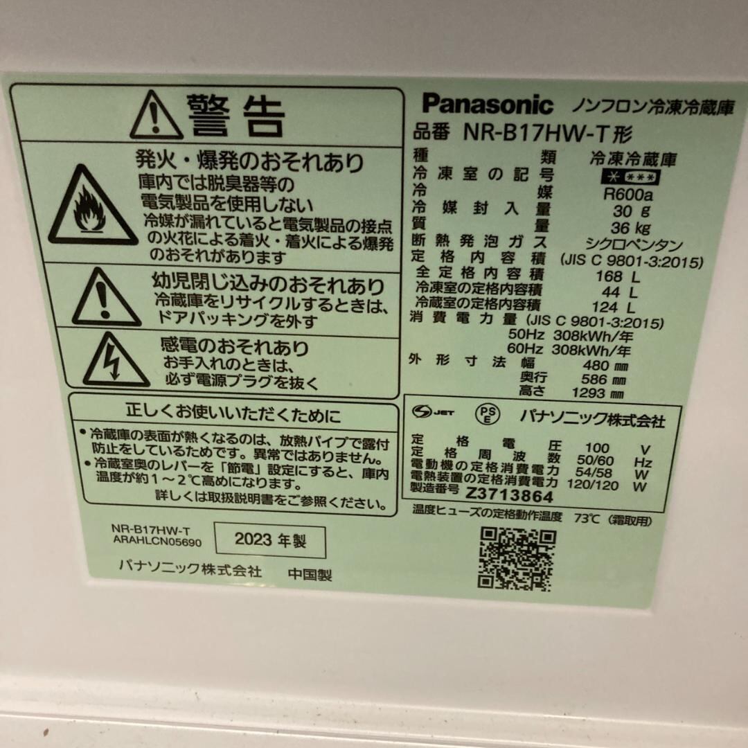 H25893 2ドアパーソナル冷蔵庫 Panasonic 2023年 168 L