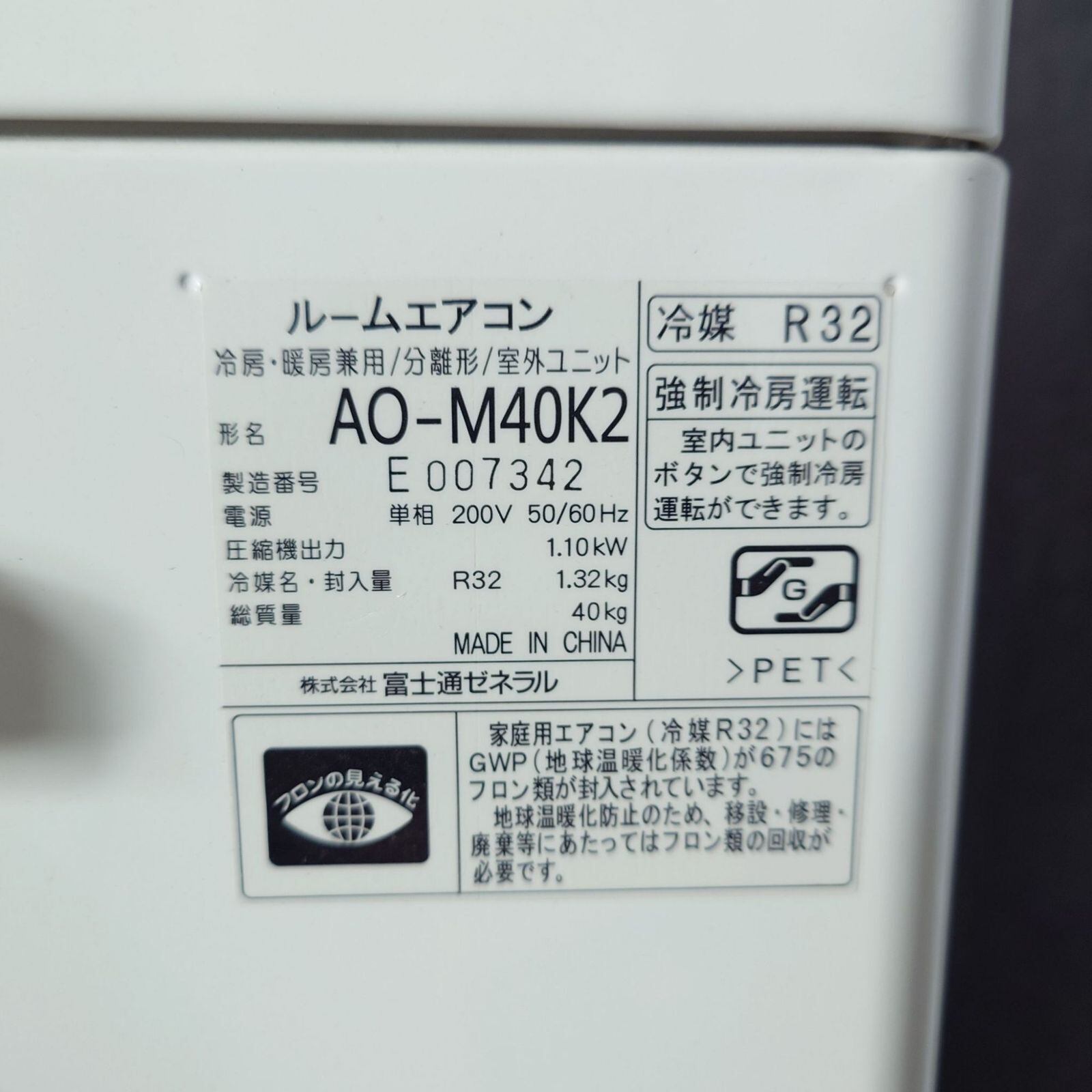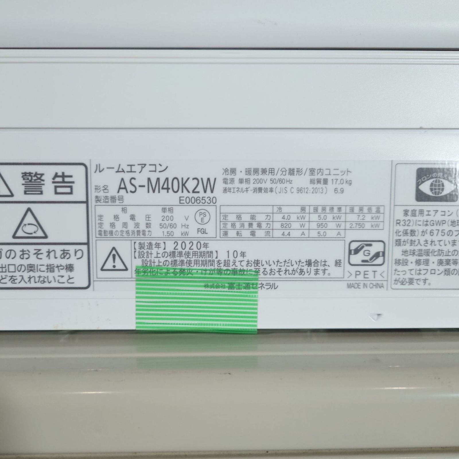 D 25979【2020年製】 長期保証付き FUJITSU 富士通ゼネラル nocria ノクリア ルームエアコン 冷房暖房 AO-M40K2 AS-M40K2W 14畳用