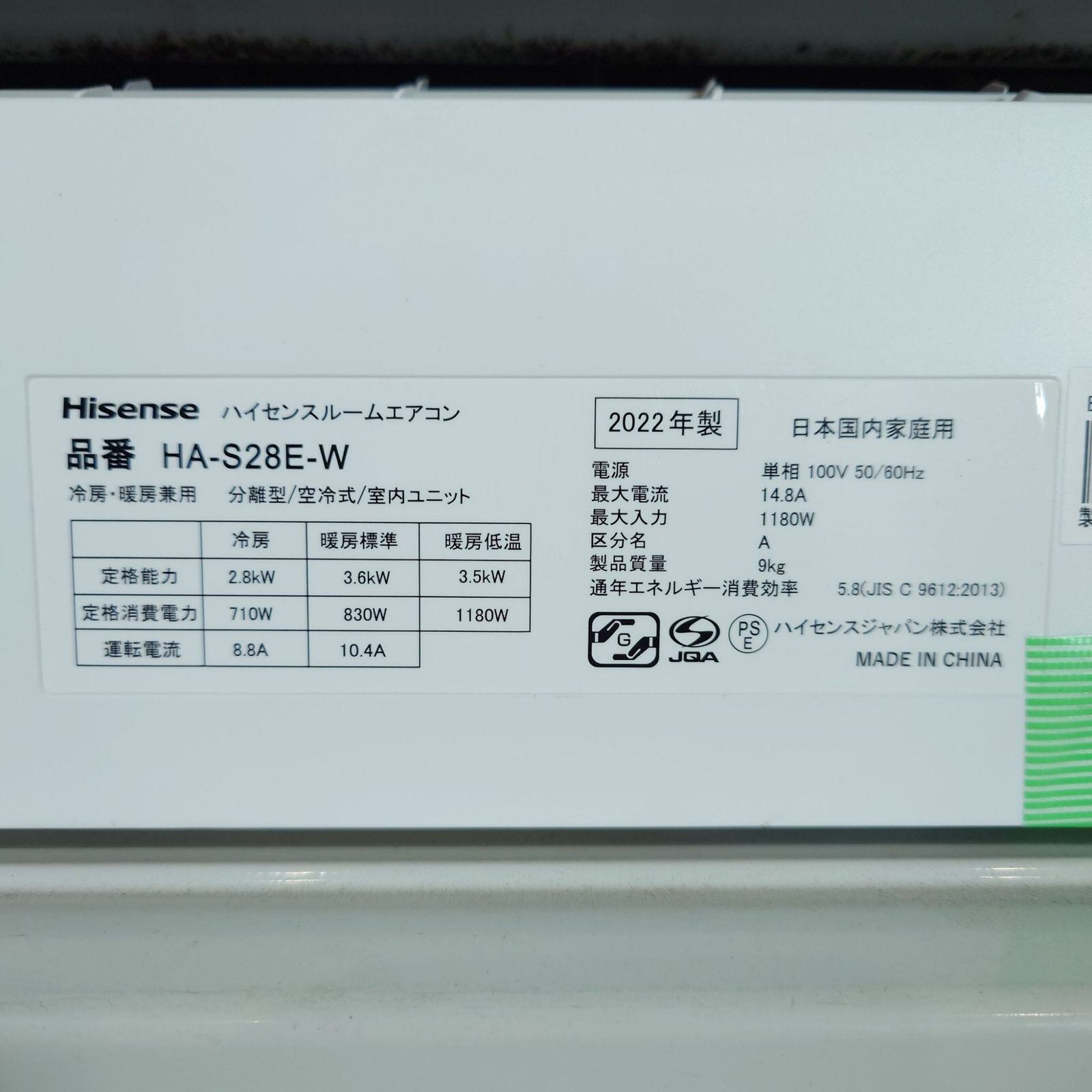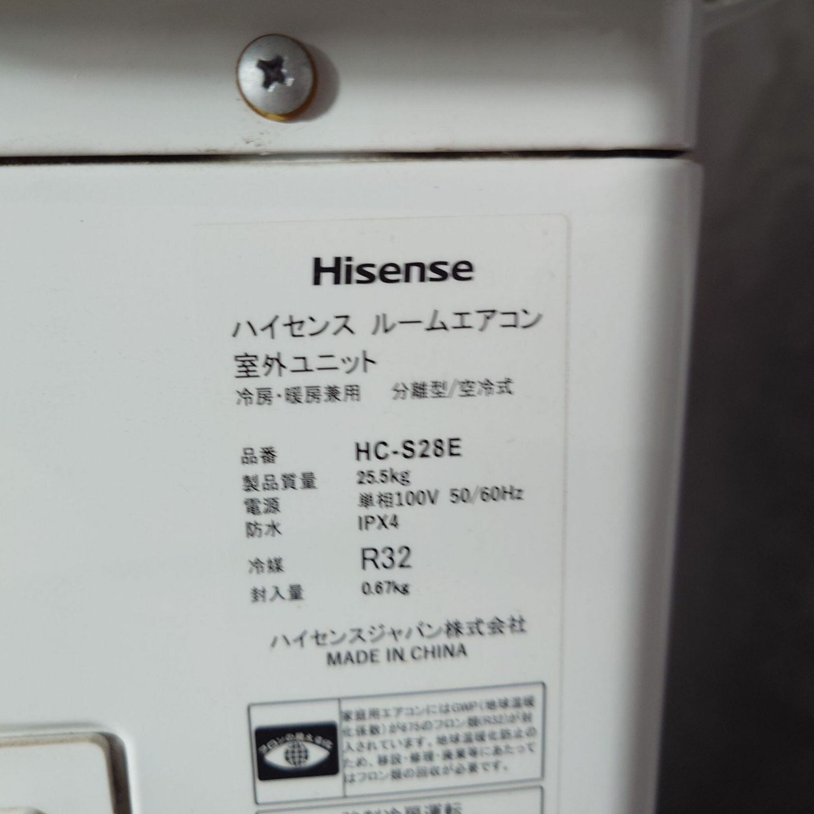 D 25983【2022年製】 Hisense ハイセンス ルームエアコン 冷房暖房 HA-S28E-W HC-S28E 10畳用