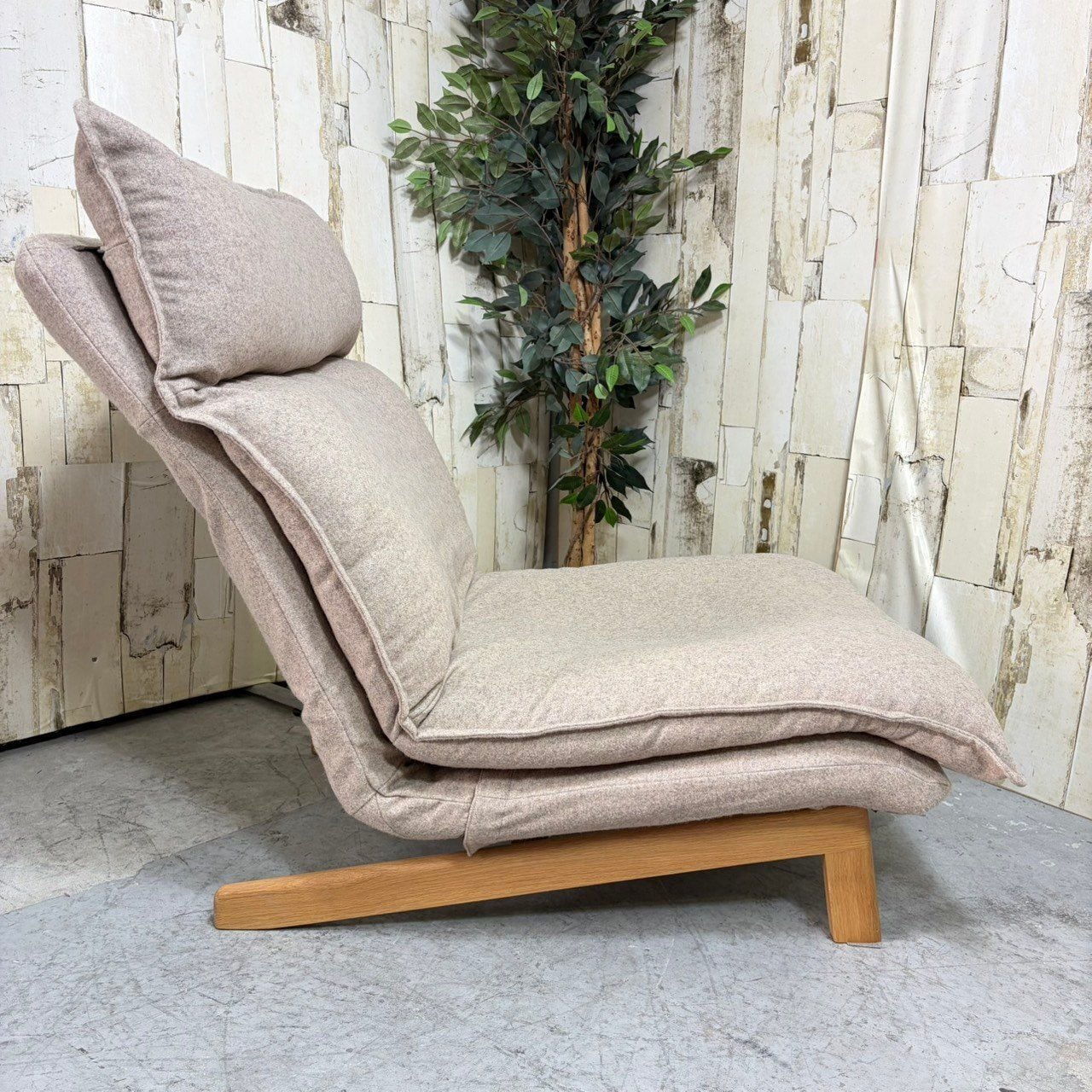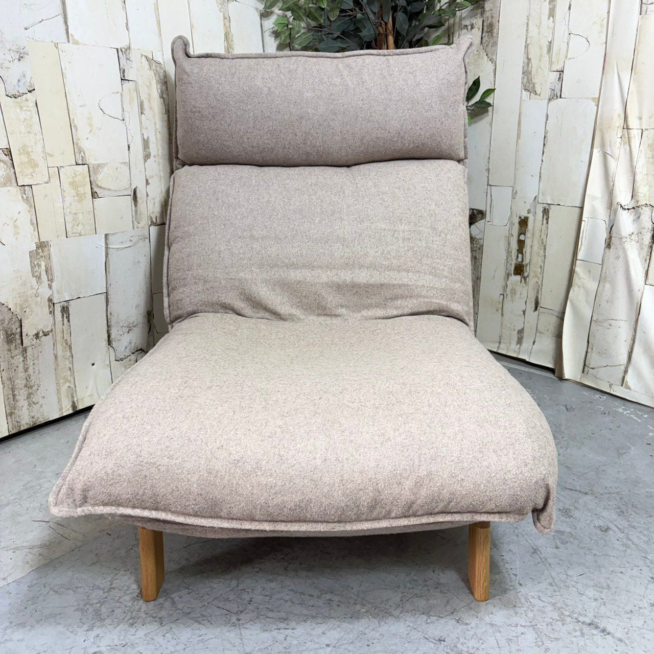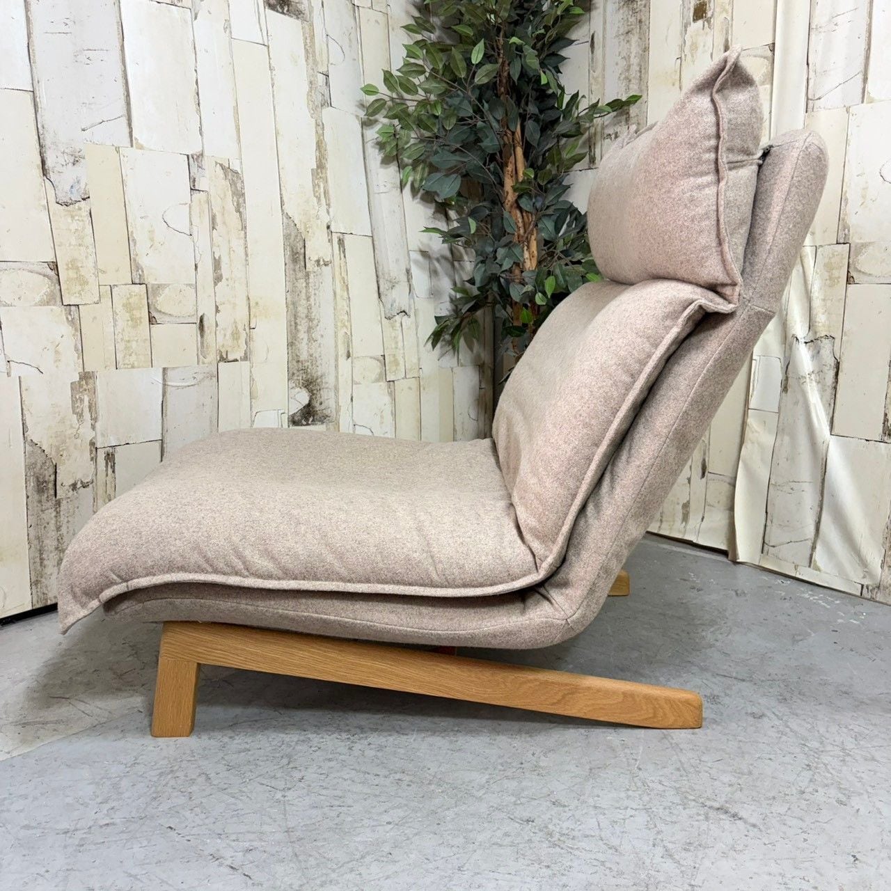 好みの角度にリクライニングできるハイバック仕様のパーソナルソファ。クッション材には粉砕したウレタンを使用しており、ふっくらした座り心地。