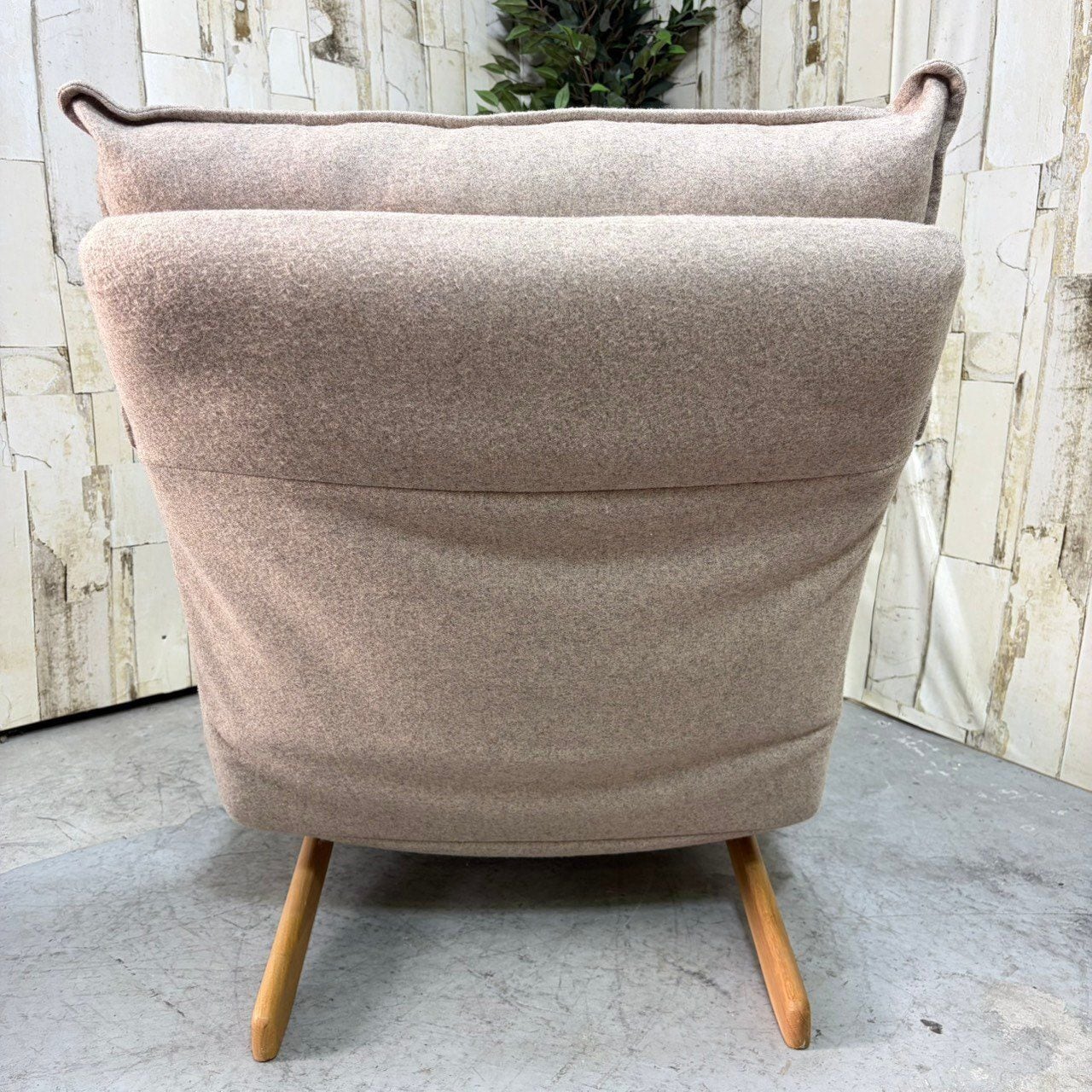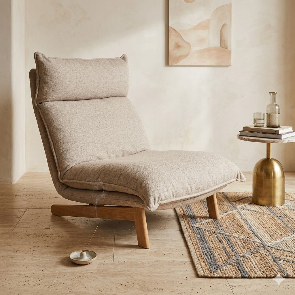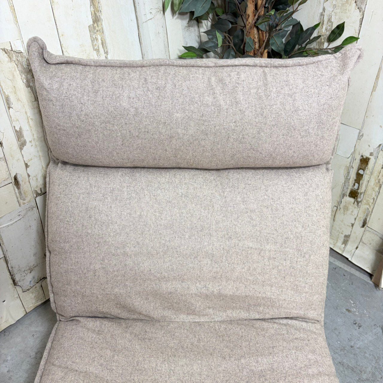 好みの角度にリクライニングできるハイバック仕様のパーソナルソファ。クッション材には粉砕したウレタンを使用しており、ふっくらした座り心地。