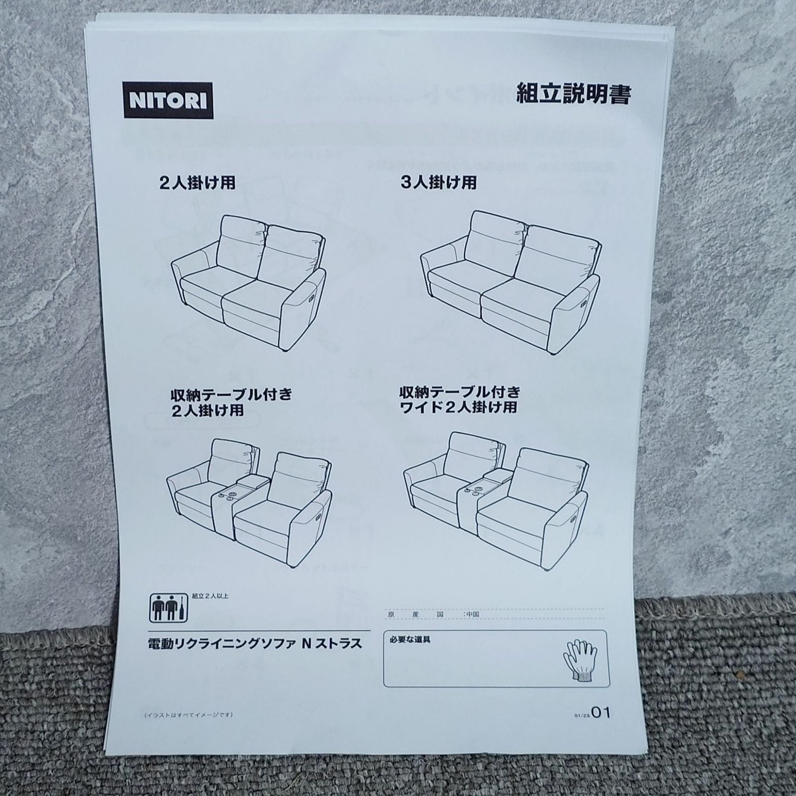 D 26014 NITORI 電動リクライニングソファ Nストラス 収納テーブル付きワイド2人掛け用 家具