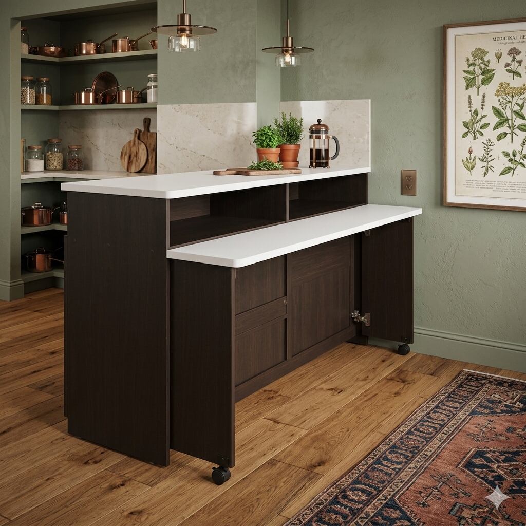 26027 W キッチンカウンター伸縮式天板 収納付き