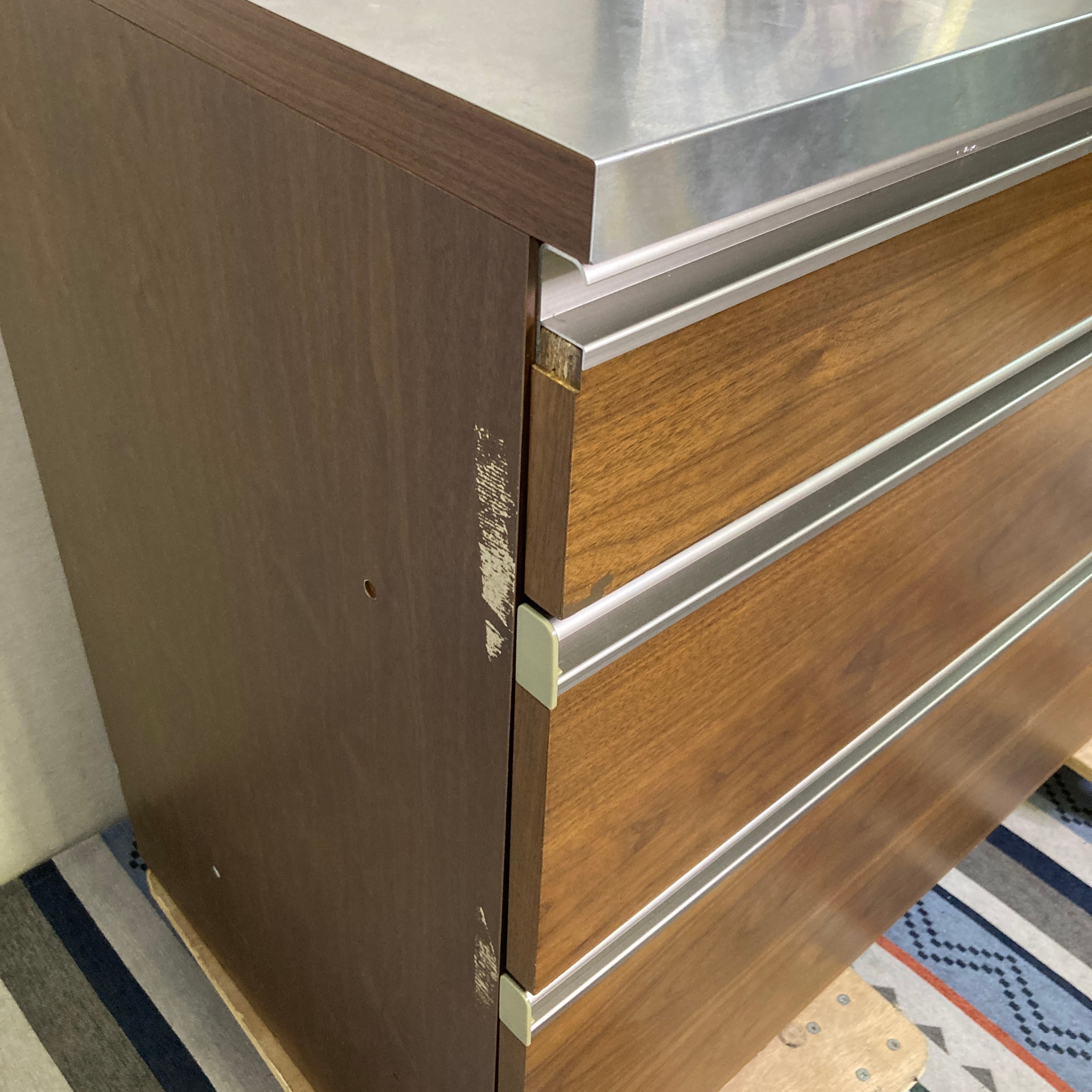 状態など:全てソフトクローズ式、ステンレス天板、引き出し内・扉角傷あり