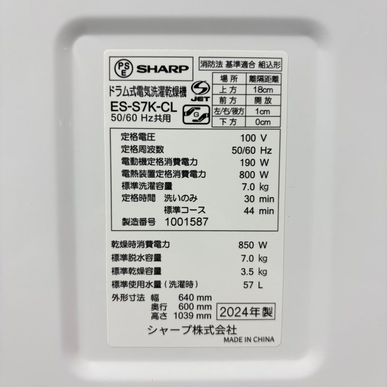 ▶型番: ES-S7K-CL