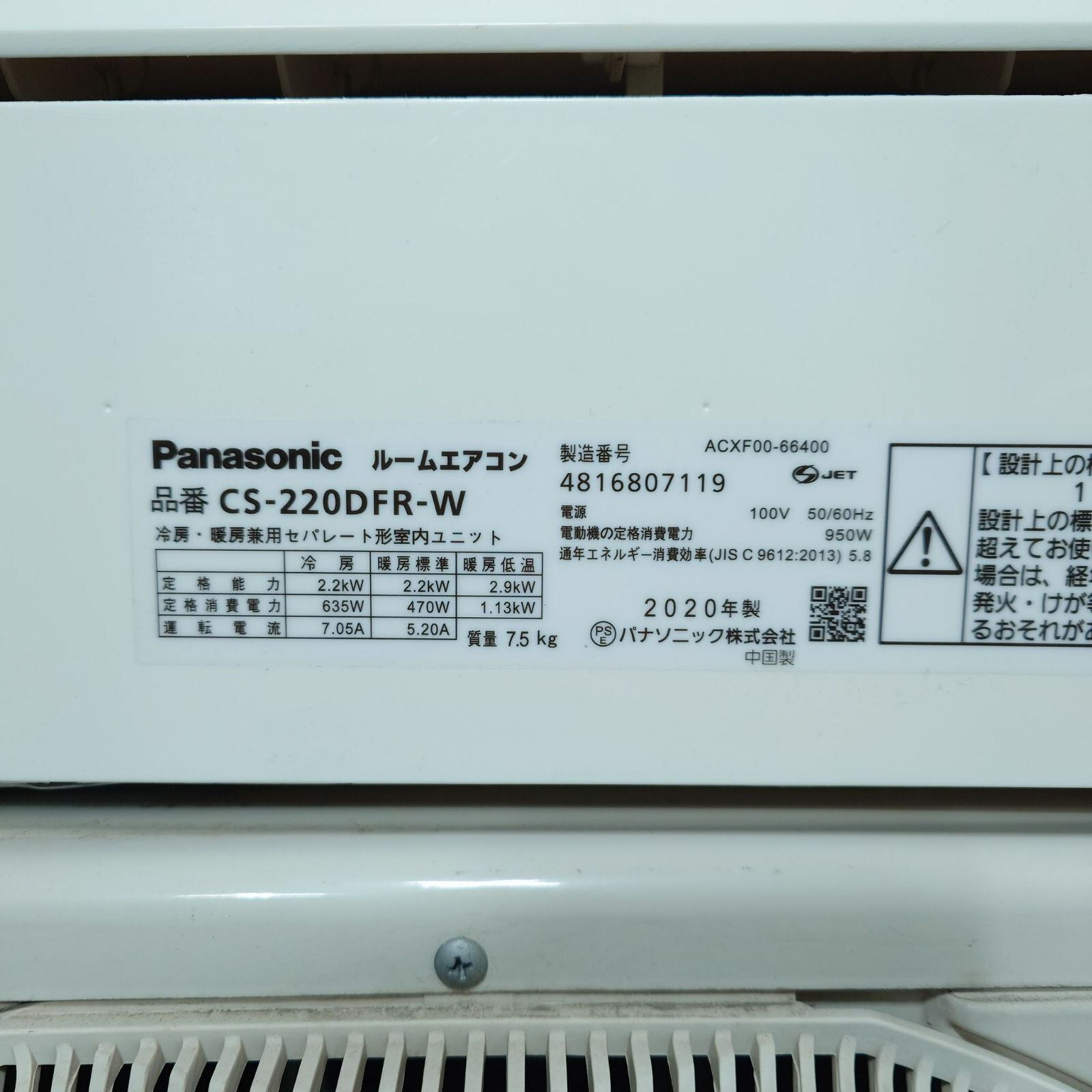 D 26070【2020年制】Panasonic パナソニック エアコン 家電 冷房・暖房兼用セパレート形 CS-220DFR-W CU-F220D 50/60Hz