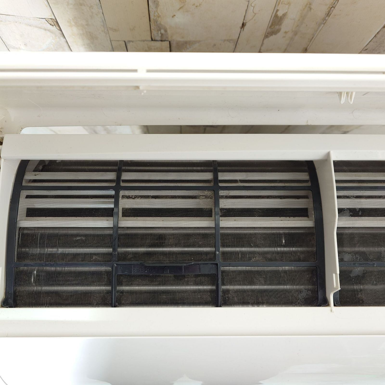 室外機の正面に取れない黒ずみがございます。
