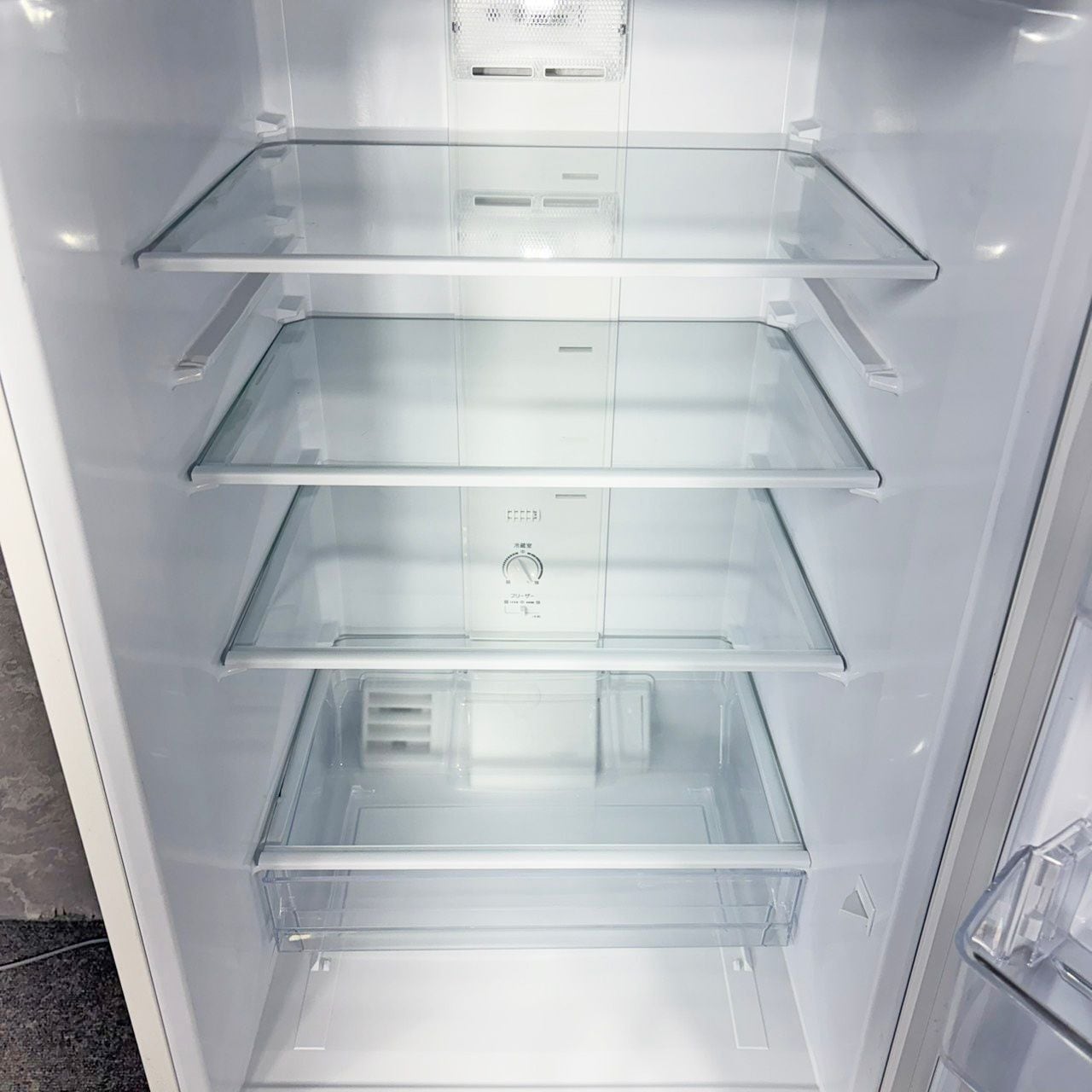 手入れがしやすい「全段強化処理ガラス棚」を採用。冷蔵室にはLED庫内灯を装備。