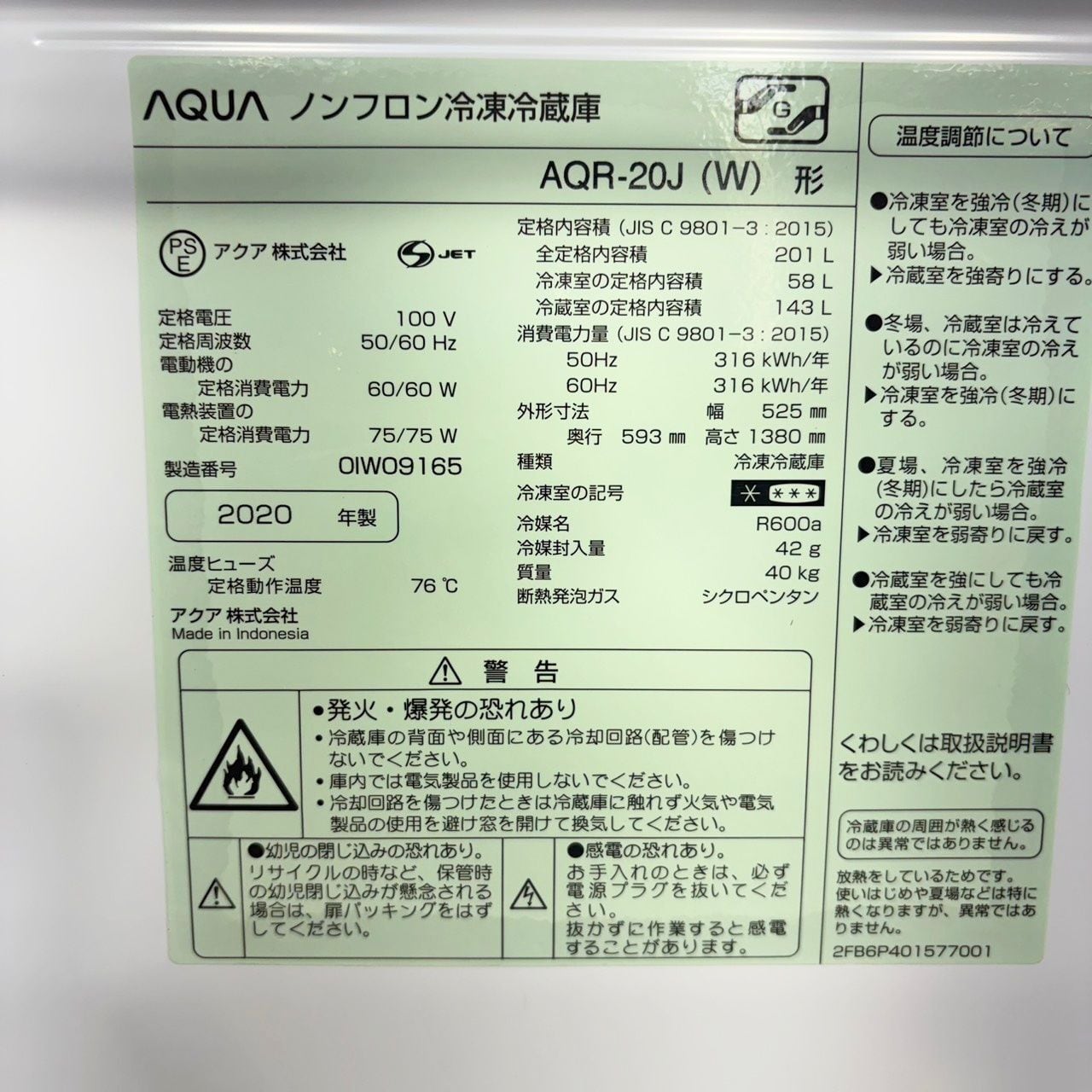 ▶型番: AQR-20J