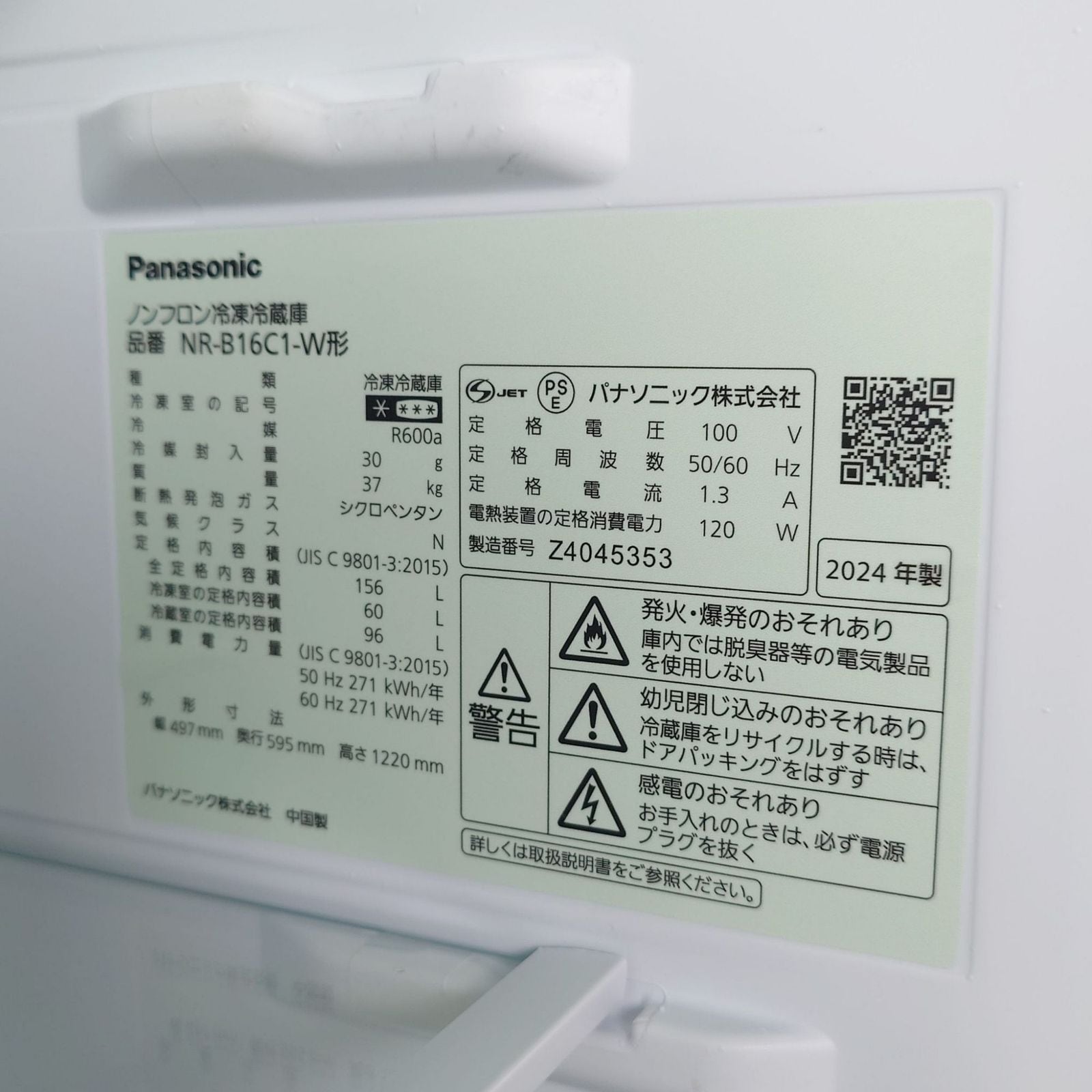 D 26166【2024年製】 Panasonic パナソニック 冷凍冷蔵庫 NR-B16C1-W 156L