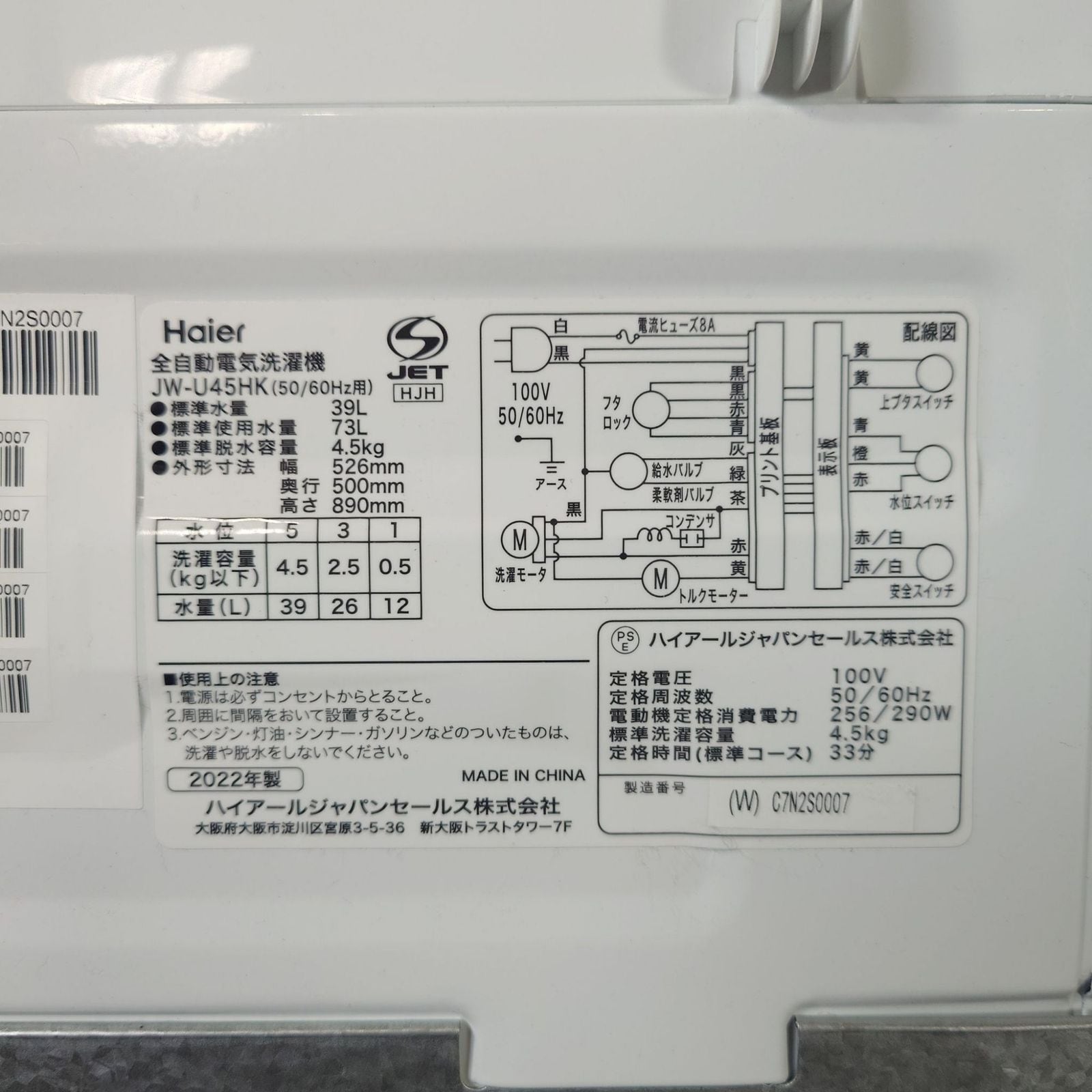 ・洗濯機 4.5kg