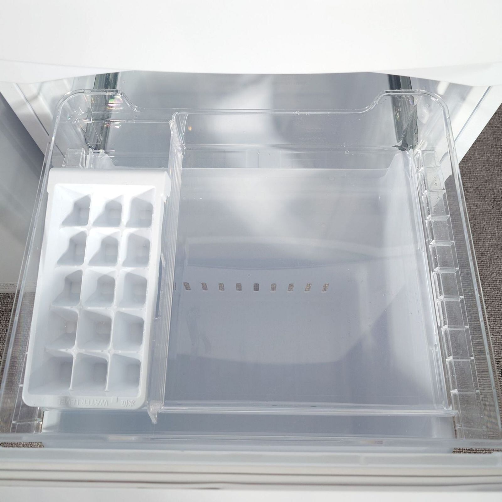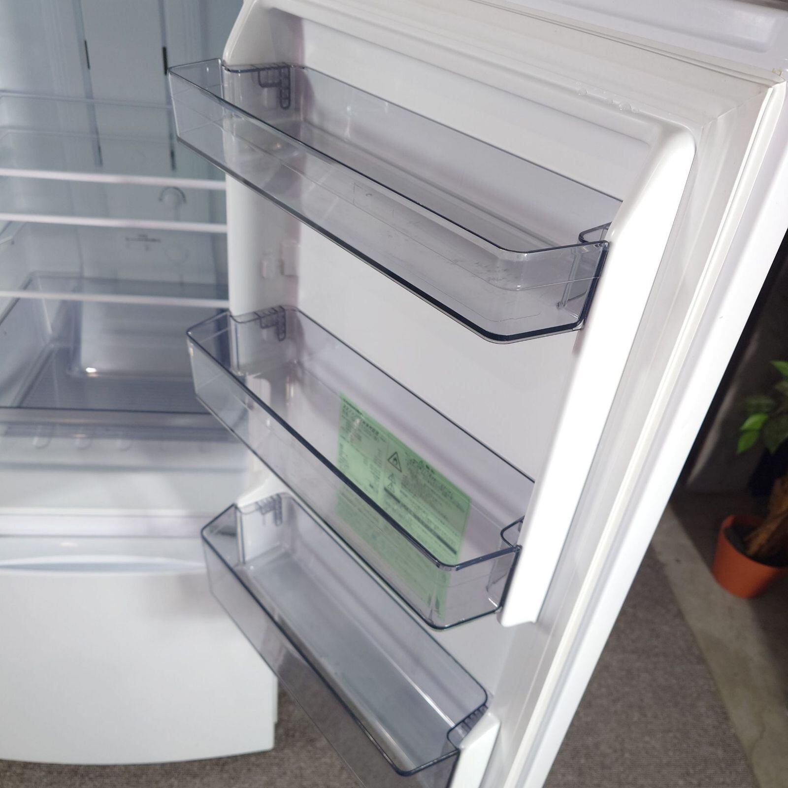 1人暮らしにうれしい収納量です。2Lのペットボトルが3本も入るほか、冷蔵室のガラス棚も3段タイプ。コンパクトなのに、使いやすい工夫でいっぱいです。