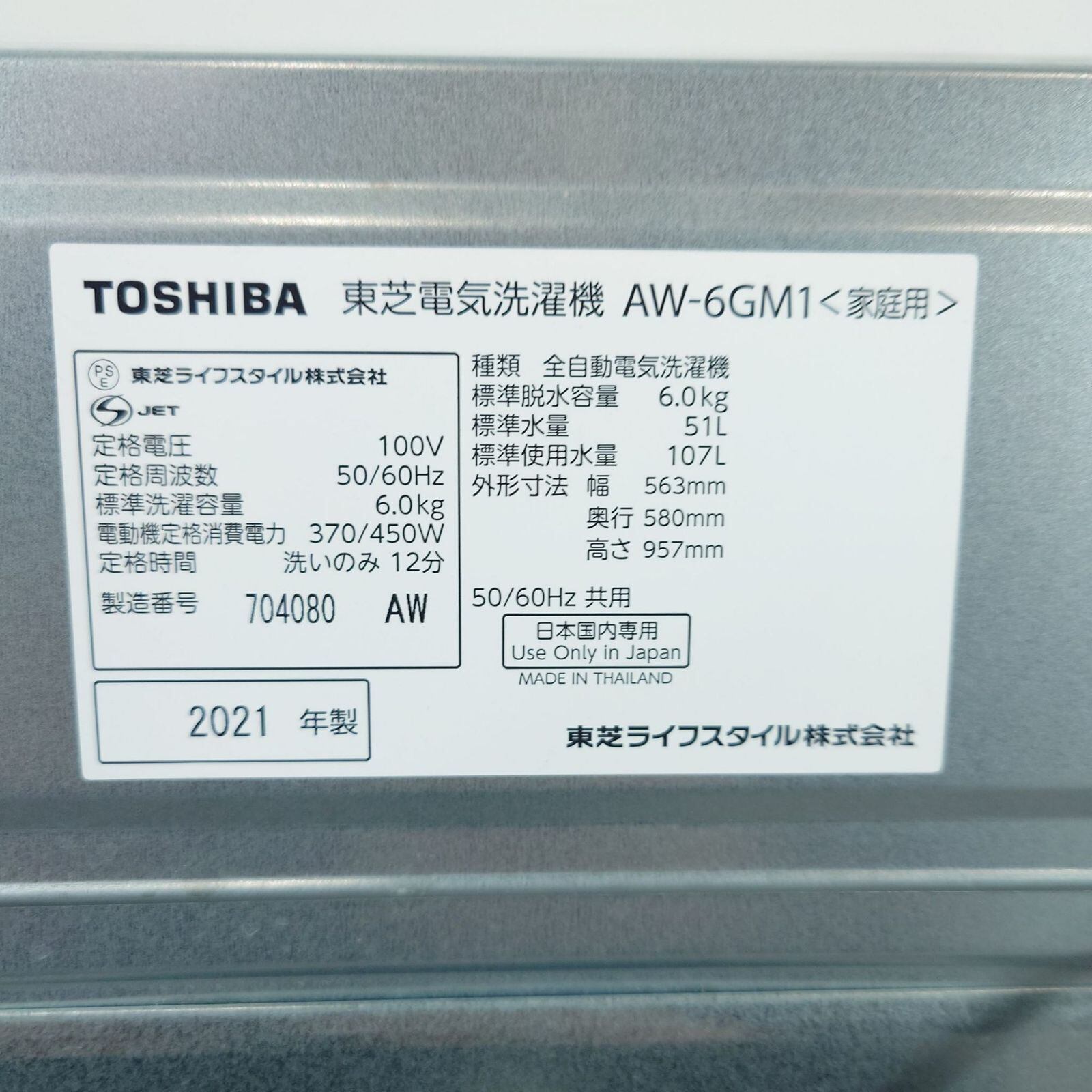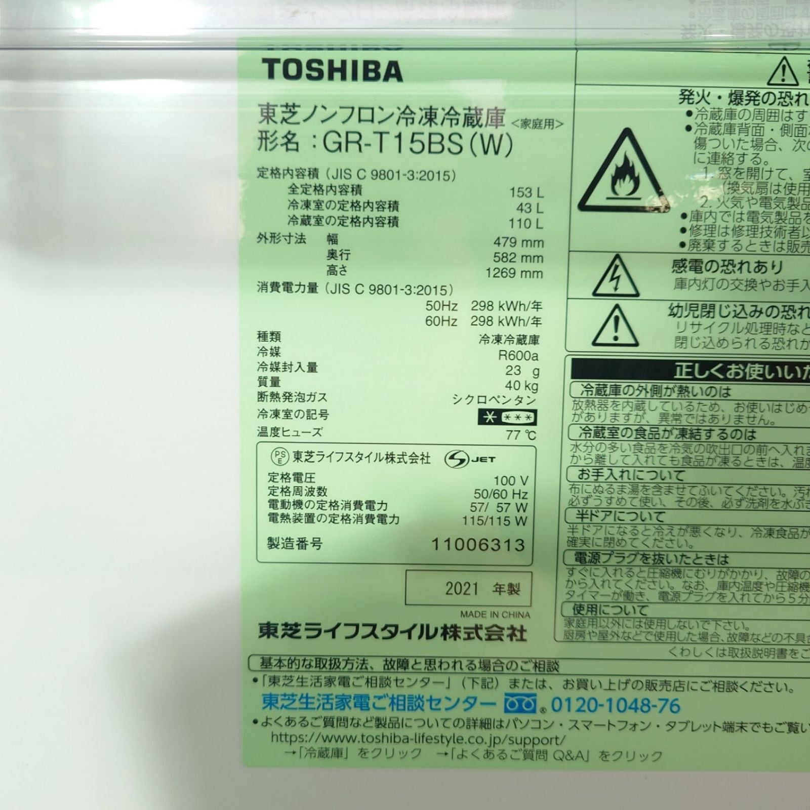 D 26193【2021年製】TOSHIBA 東芝 家電セット GR-T15BS AW-6GM1 ノンフロン冷凍冷蔵庫 153L 洗濯機 6.0kg