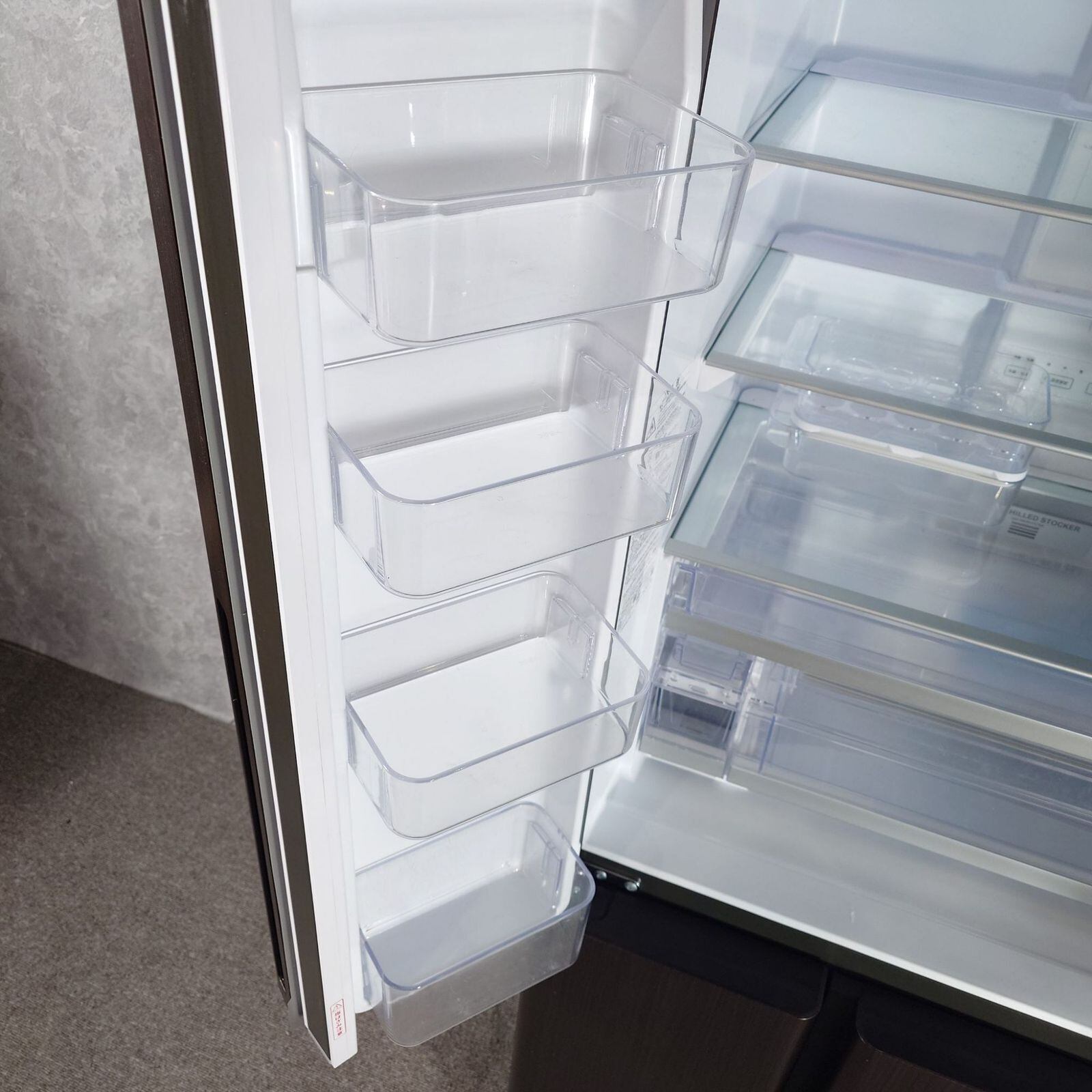 奥行き635mmの「うす型設計」で最上段の奥まで手が届きやすい冷蔵庫(512L)。横幅は830mmのワイド設計。