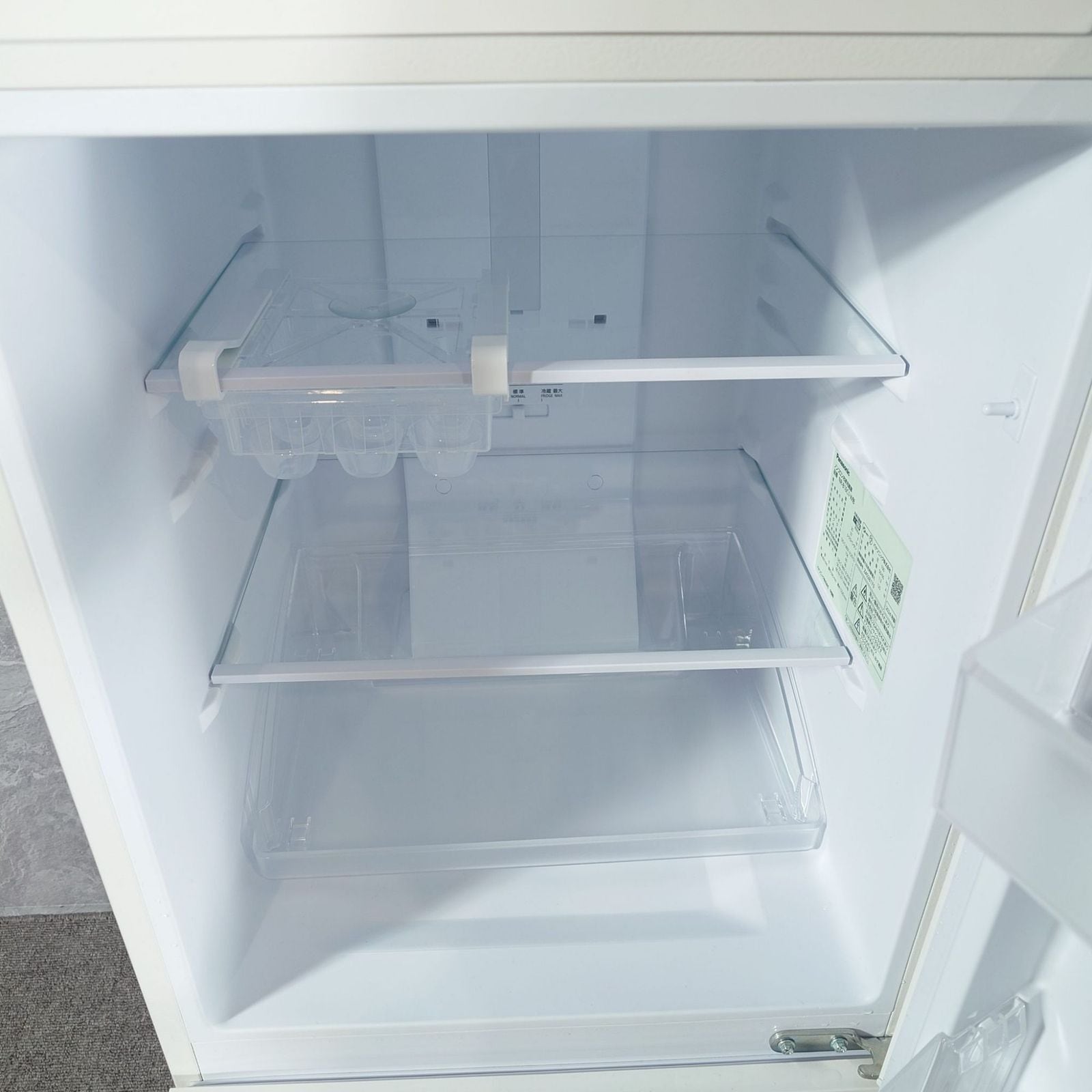 冷凍室は収納に便利な仕切りケース(貯氷箱)付き。冷蔵室にはたっぷり収納できる2段のドアポケットを装備。
