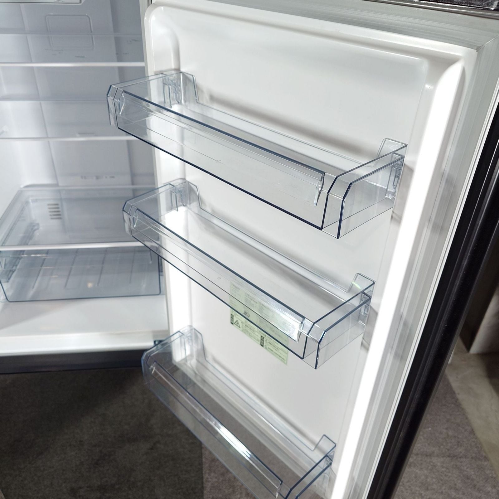 冷蔵室は、入れるものにあわせて棚板やドアポケットの高さを調節可能。飲料や調味料など、よく使う容器サイズにあわせた設計になっている。