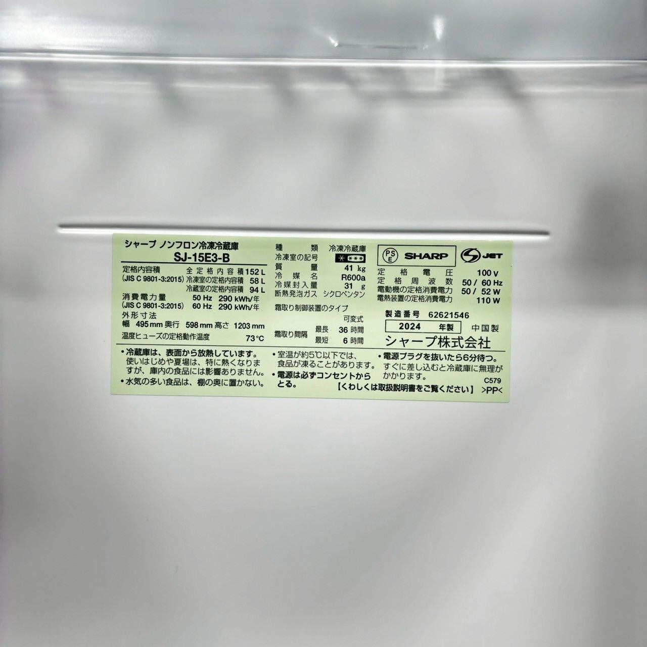 D 26204【2024年製】SHARP シャープ SJ-15E3-B ノンフロン冷凍冷蔵庫 152L