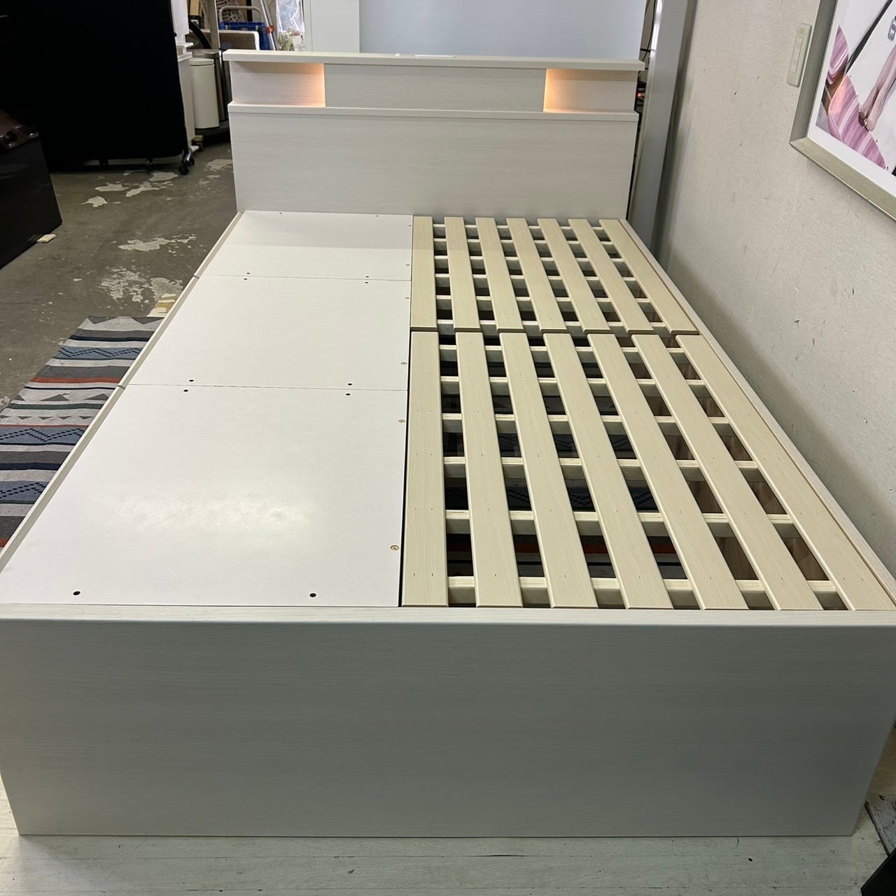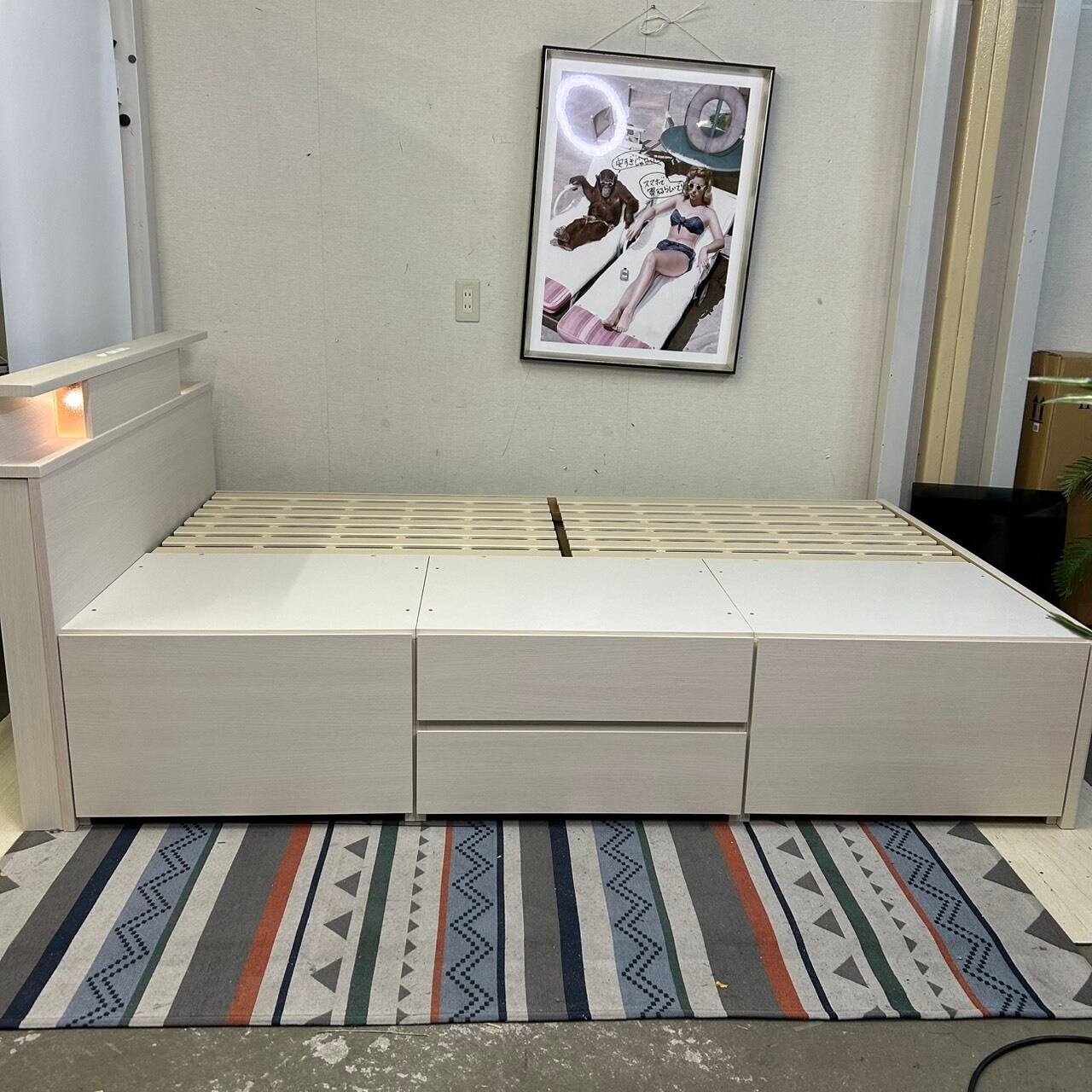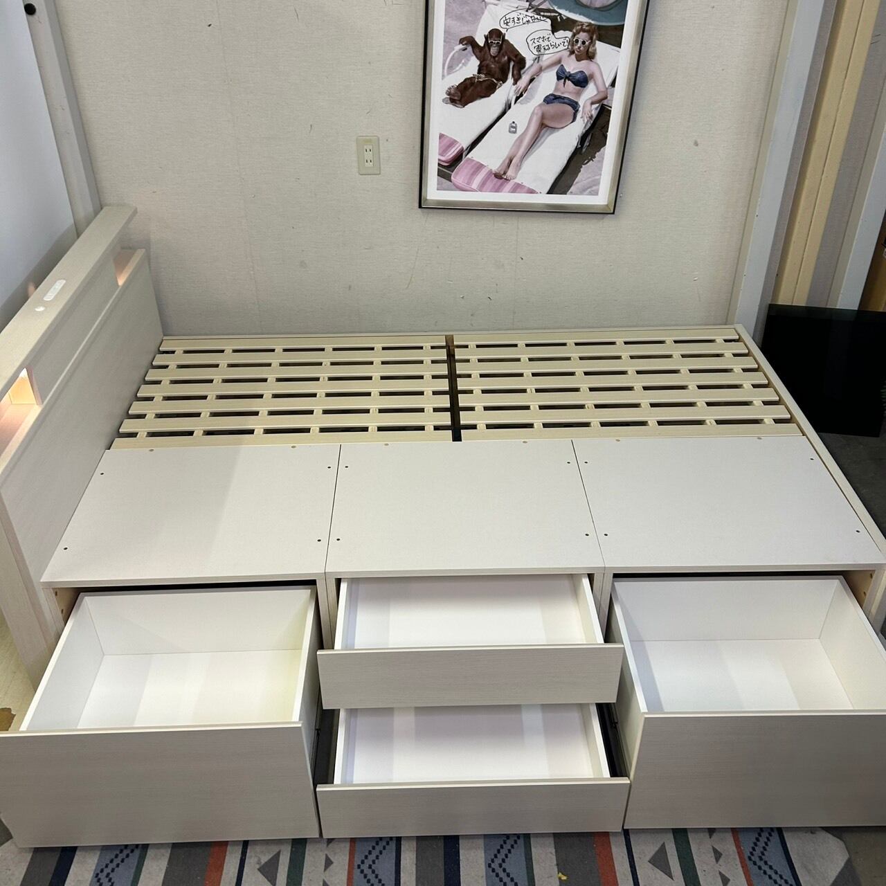 〇セミダブルベッドフレーム ライト・コンセント・USBポート・大容量収納付き【NITORI】