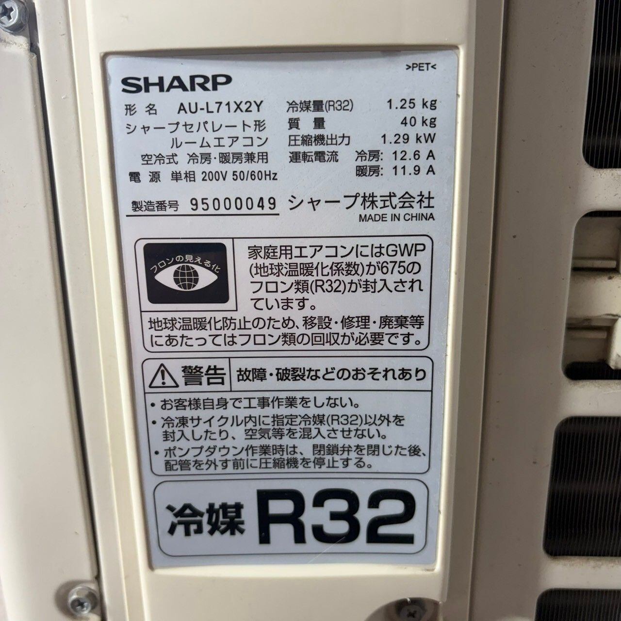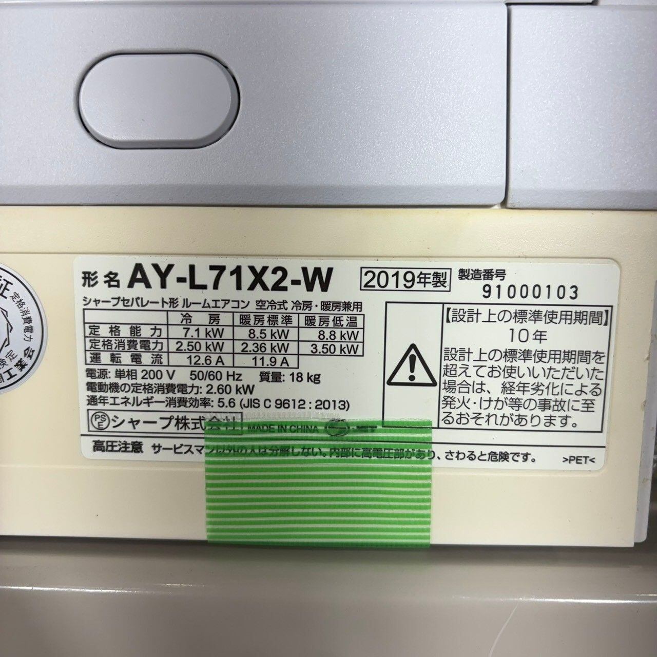 D 26266【2019年製】 SHARP シャープ プラズマクラスター エアコン 冷房暖房 AY-L71X2-W AU-L71X2Y 23畳用
