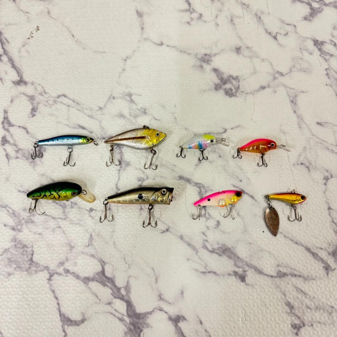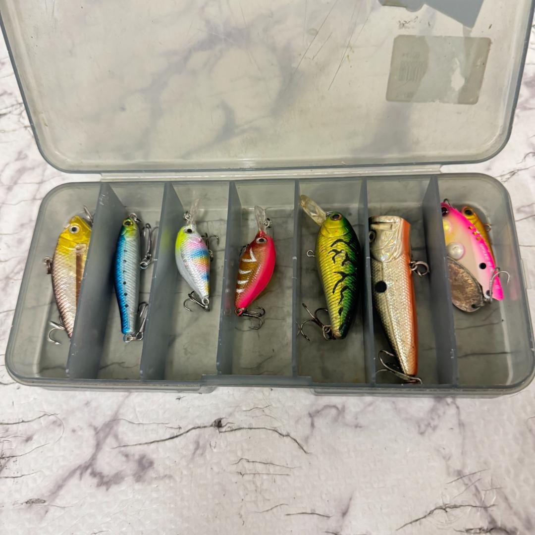 ※ケース全体的にキズあり 右側黄色い魚、頭部分少しベトベトする 針少しサビ汚れあり Bait Breath2 ジャッカル佐助ブレードJr11 不明6個