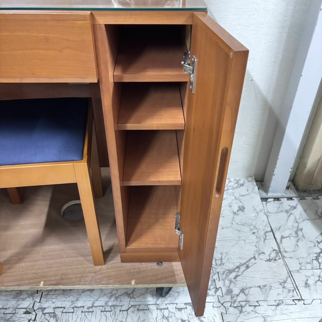 21466 椅子付きガラス天板ドレッサー 鏡台 化粧台