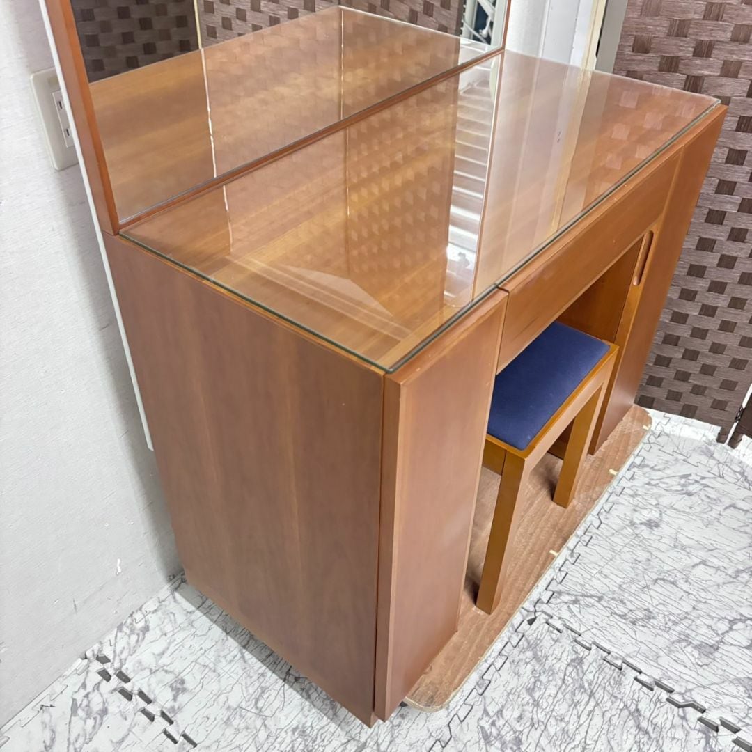 〇椅子付きガラス天板ドレッサー 鏡台 化粧台